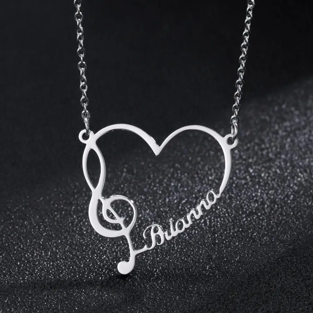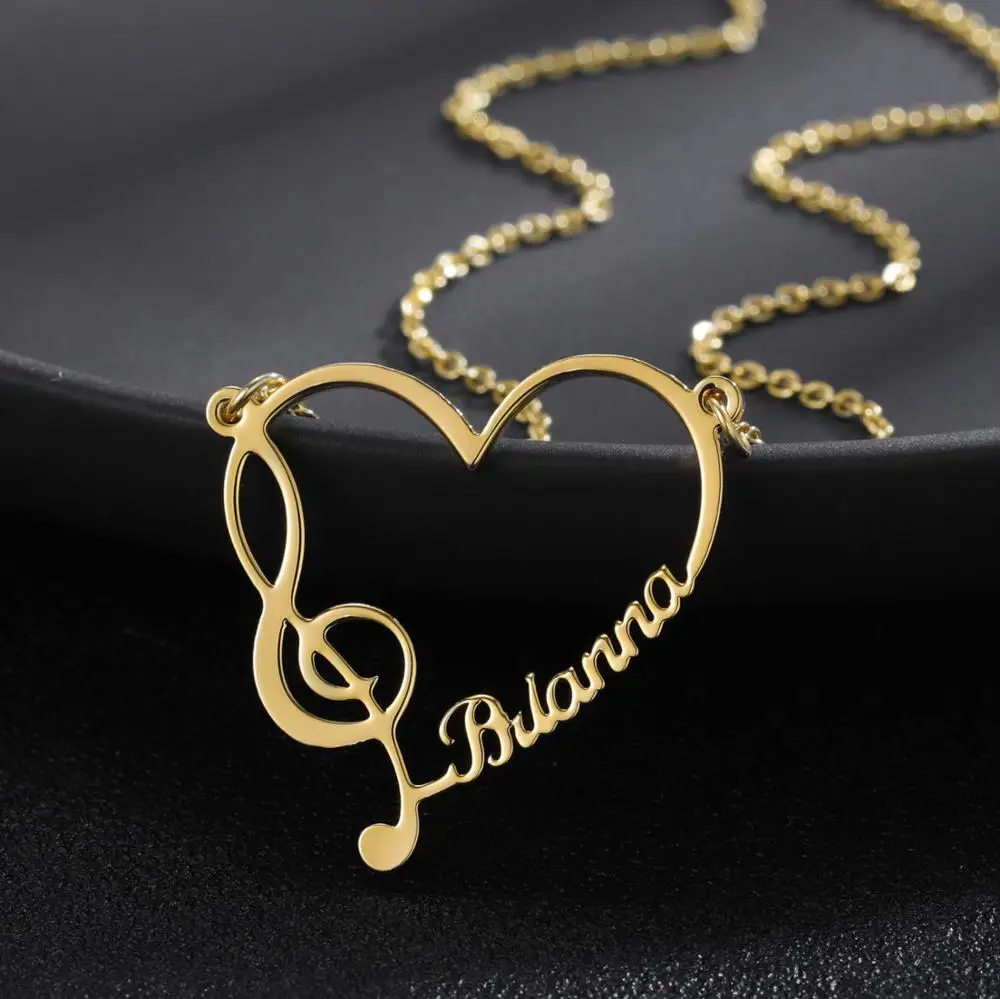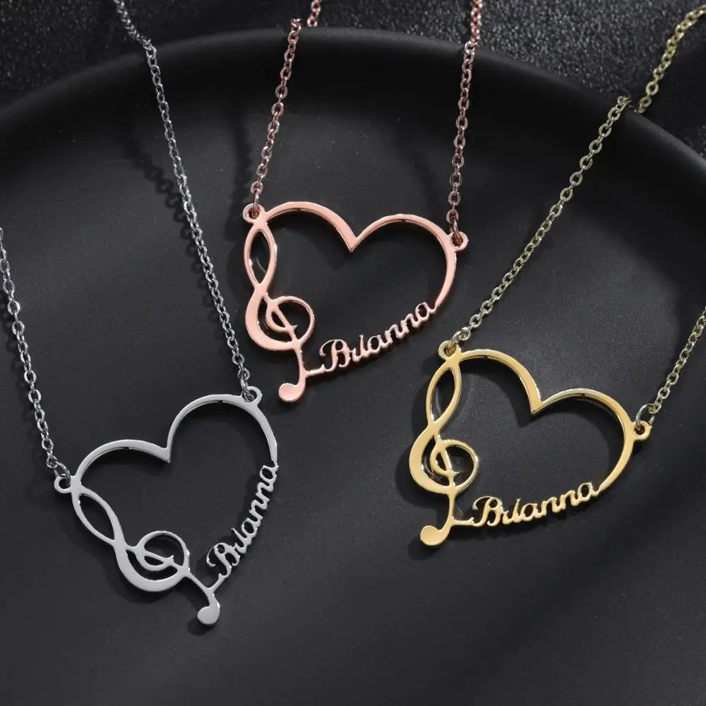 Музыкальная нота, Музыкальный символ, Скрипичный ключ, подарочное массивное ожерелье, золотой цвет, нержавеющая сталь, индивидуальный именной кулон для женщин и мужчин
