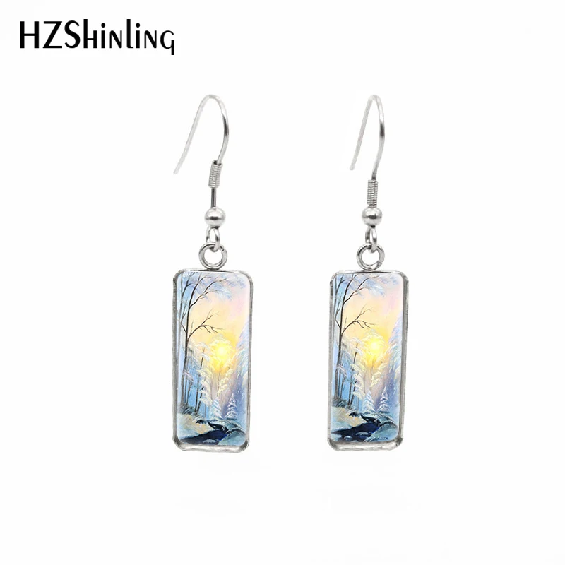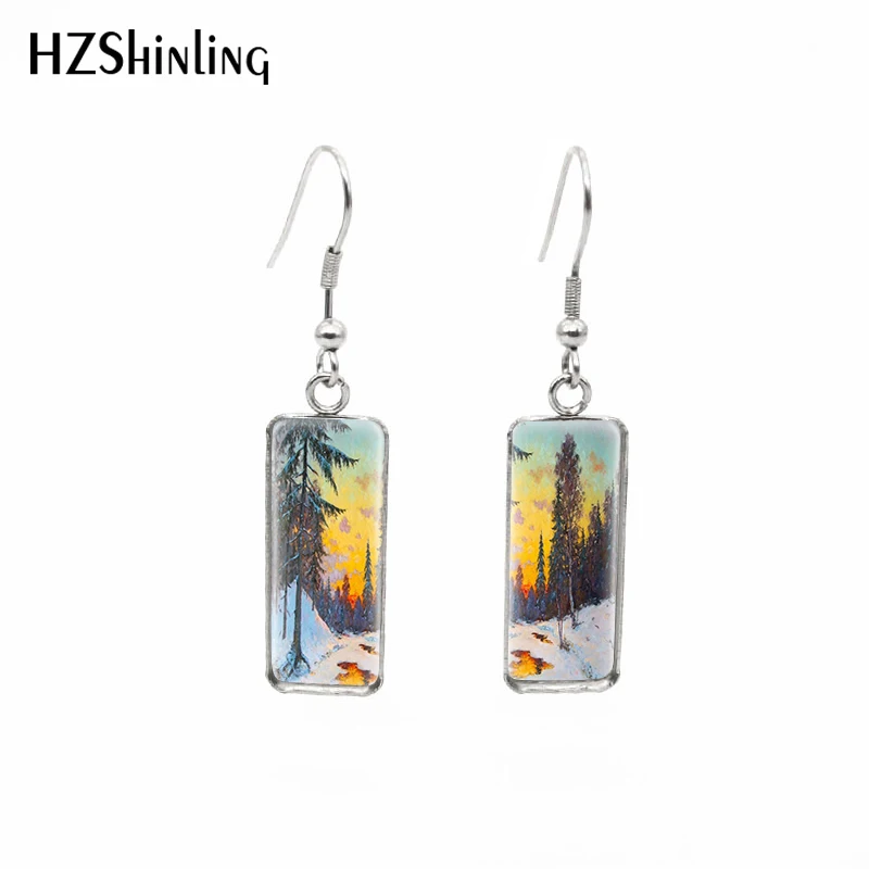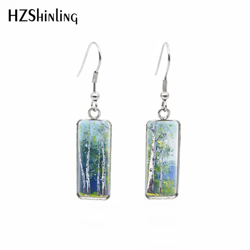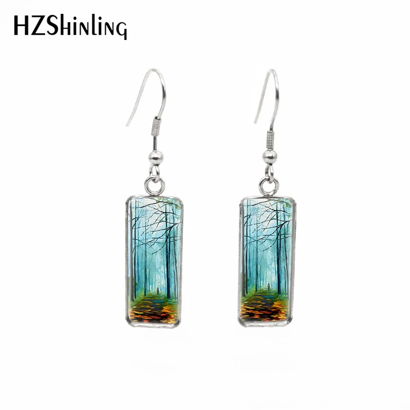 Новинка 2020, серьги с рисунком леса, загадочные деревья, художественные прямоугольные серьги, серьги с крючком, стеклянные украшения для фотографий
