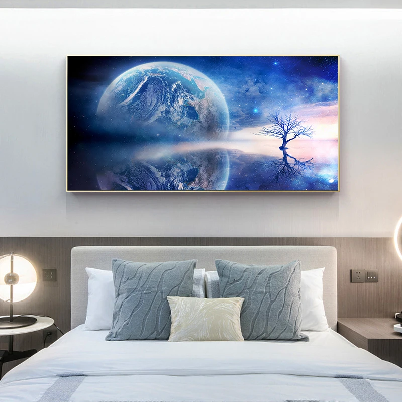 Картина маслом на холсте Земля и отражение дерева, постеры и принты, Скандинавская Настенная картина для гостиной, Декор для дома