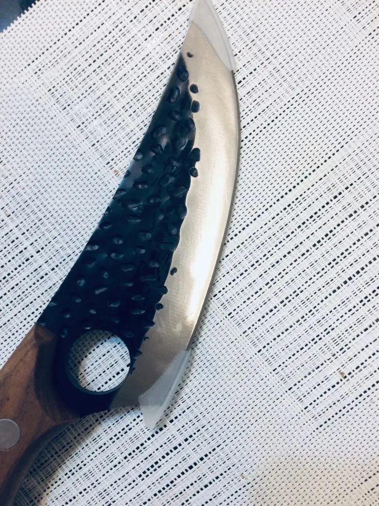 Нож пришёл острый, как дальше будет посмотрим. Что за сталь непонятно, будет ли держать заточку - неясно)) Следы ковки выглядят забавно и не так красиво как на фото.