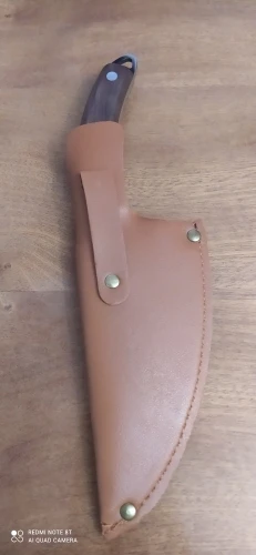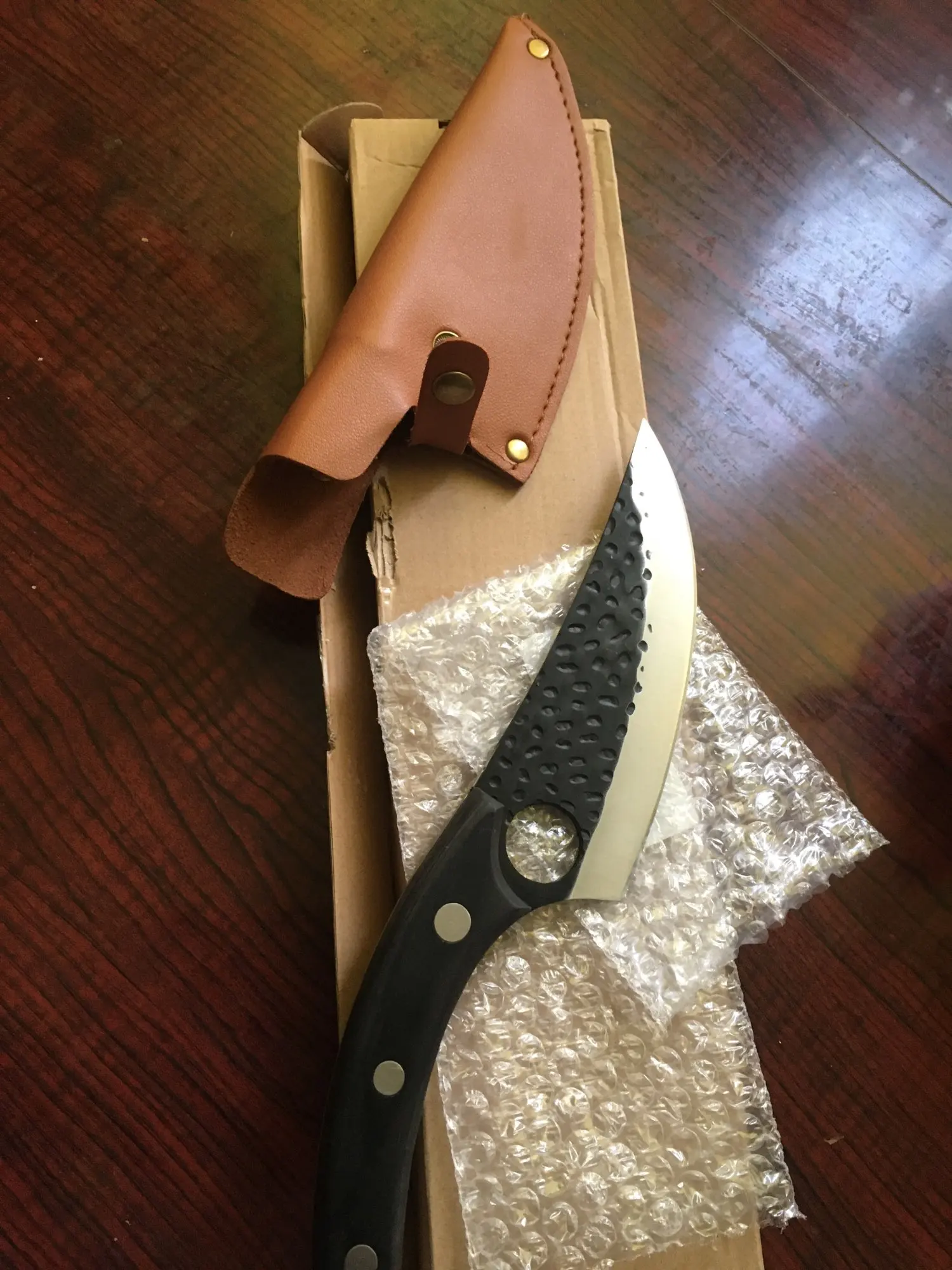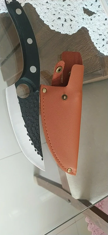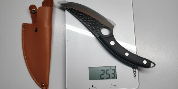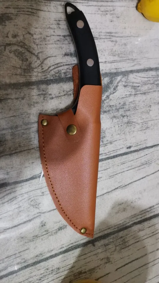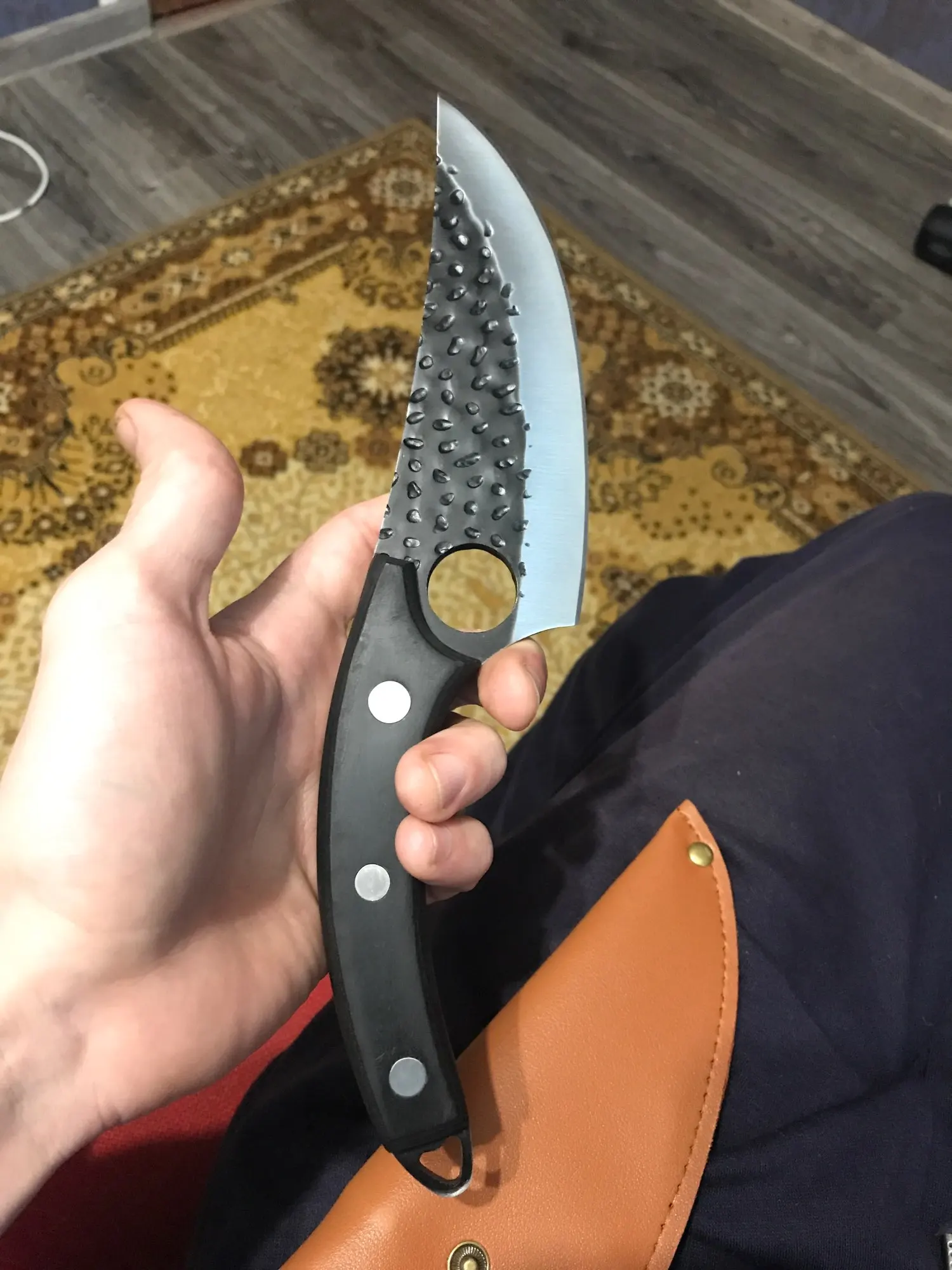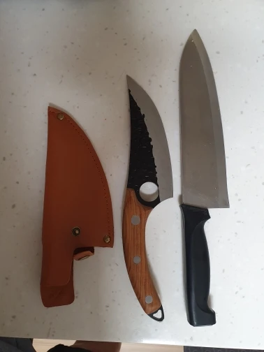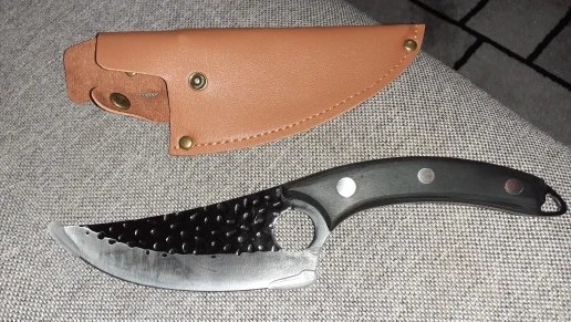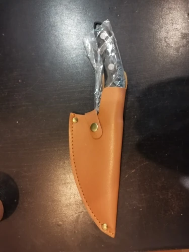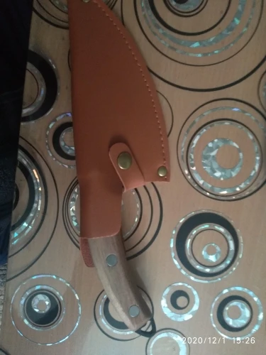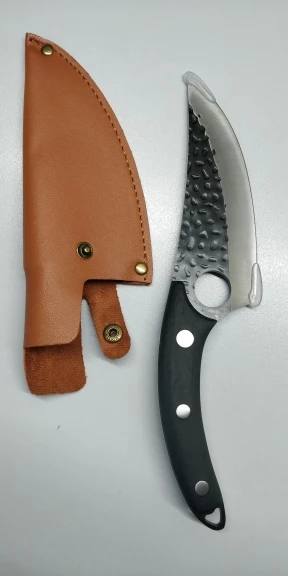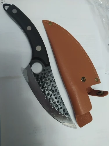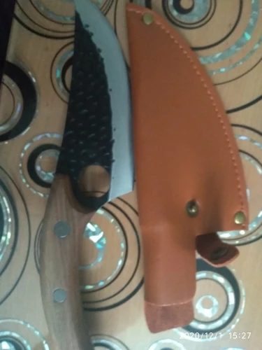 Нож острый, не стоит прикладывать особых усилий, чтобы порезать мясо. Отлично справляется с сухожилиями, косточками. Рукоятка выполнена из дерева, не шершавая, удобно лежит в руке, не соскальзывает. Помимо того, что нож справляется на 5+ со свей задачей, он еще и выглядит красиво. Доступны две комплектации: с чехлом и без. У меня с чехлом, можно брать с собой на природу. Доставка в Краснодарский край составила неделю. Запакован нож был хорошо. Трек-номер отслеживался на всём пути. Посылку принес курьер домой. Нож достойный, нравится. К покупке рекомендую!