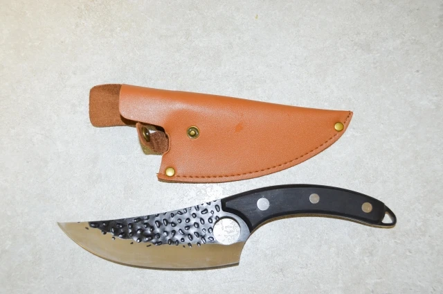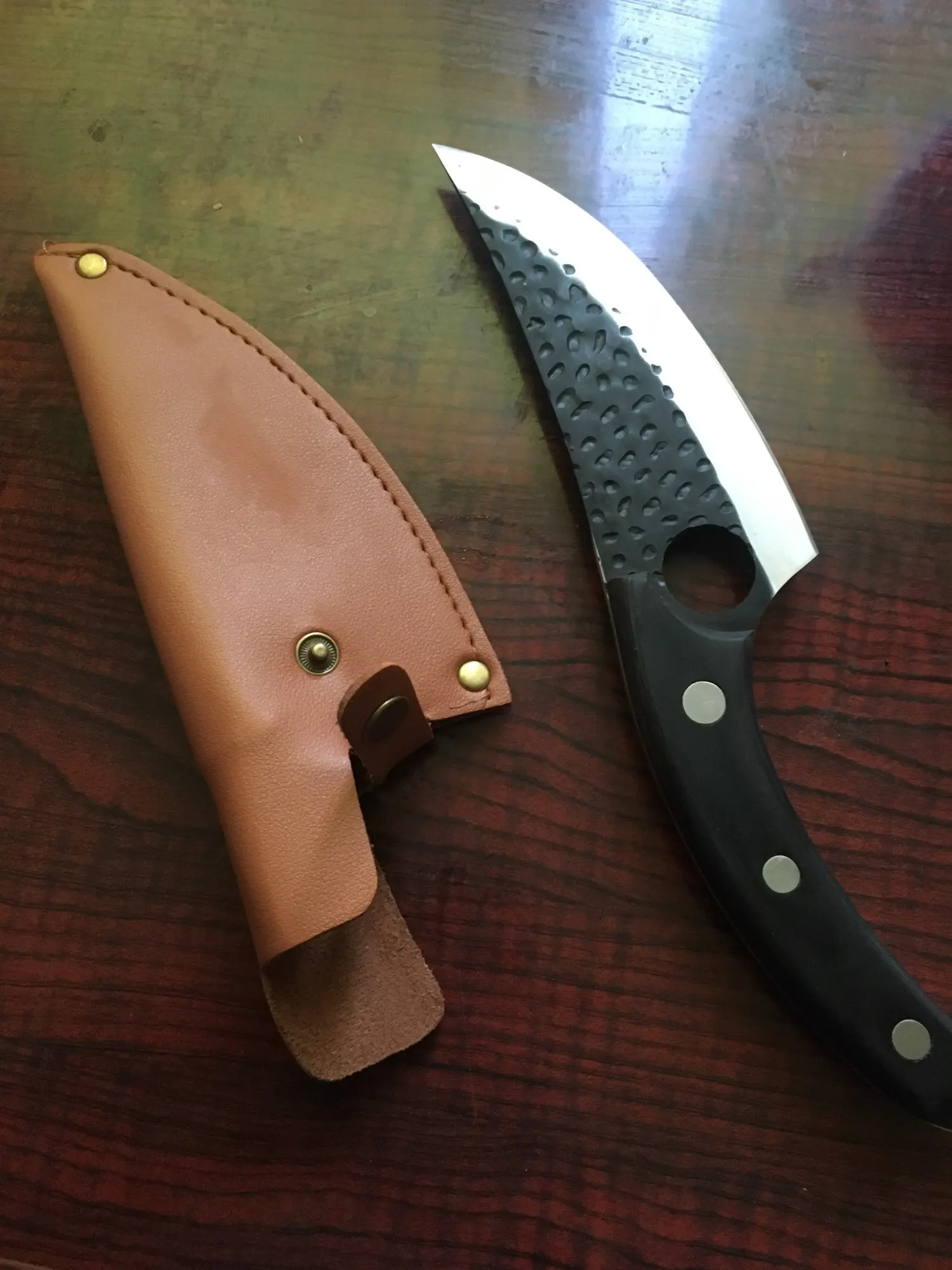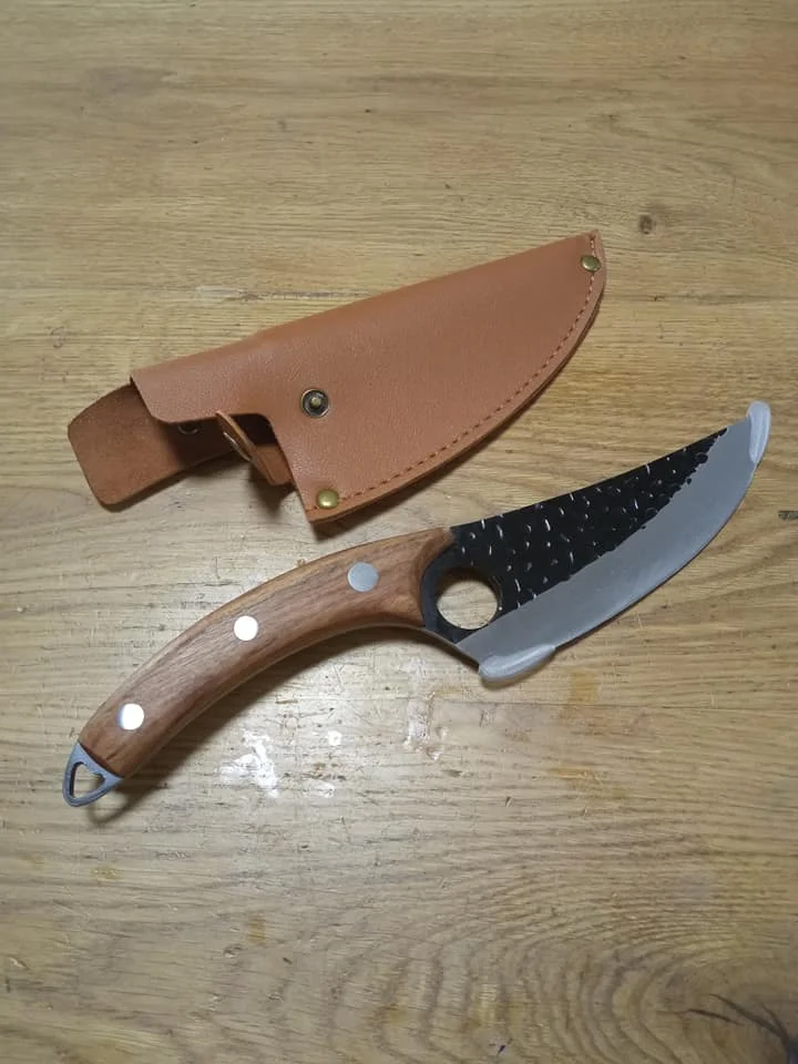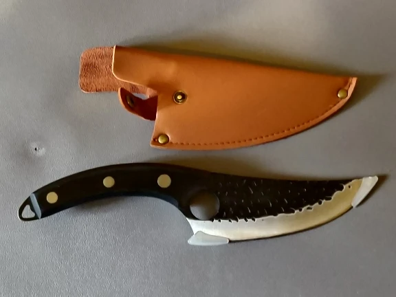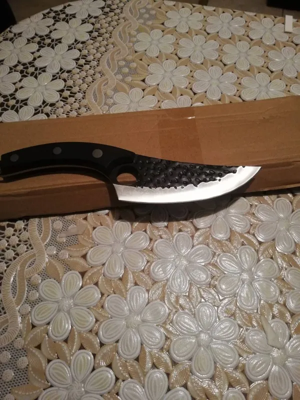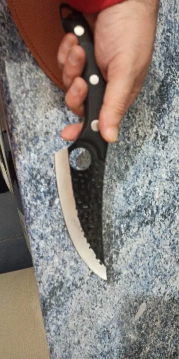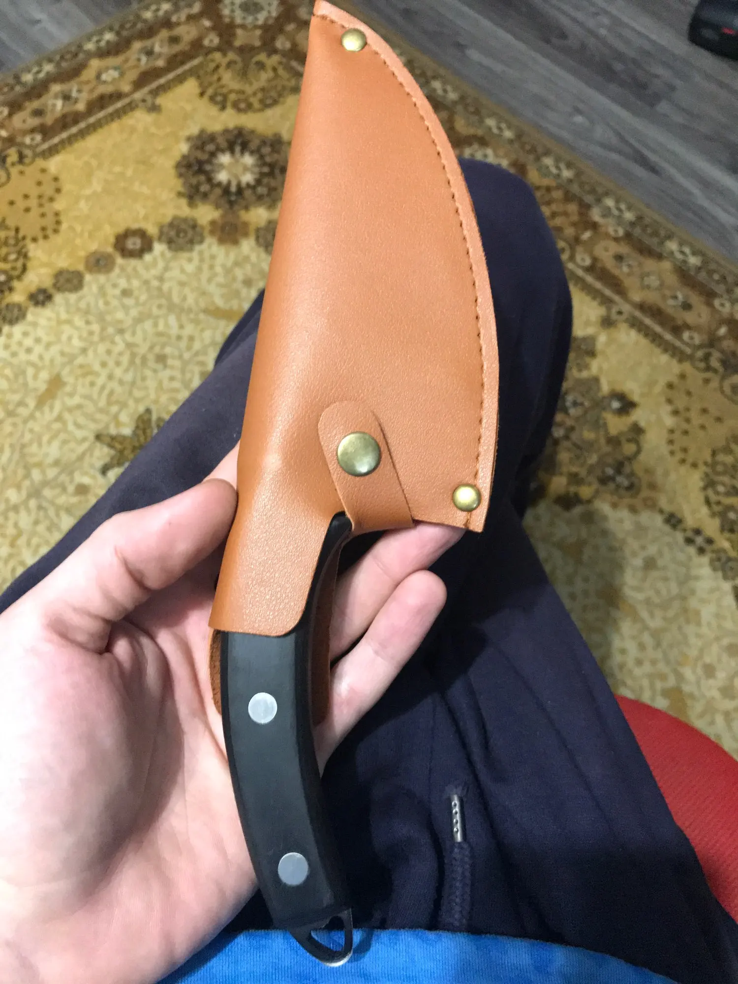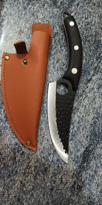 Нож острый, не стоит прикладывать особых усилий, чтобы порезать мясо. Отлично справляется с сухожилиями, косточками. Рукоятка выполнена из дерева, не шершавая, удобно лежит в руке, не соскальзывает. Помимо того, что нож справляется на 5+ со свей задачей, он еще и выглядит красиво. Доступны две комплектации: с чехлом и без. У меня с чехлом, можно брать с собой на природу. Доставка в Краснодарский край составила неделю. Запакован нож был хорошо. Трек-номер отслеживался на всём пути. Посылку принес курьер домой. Нож достойный, нравится. К покупке рекомендую!