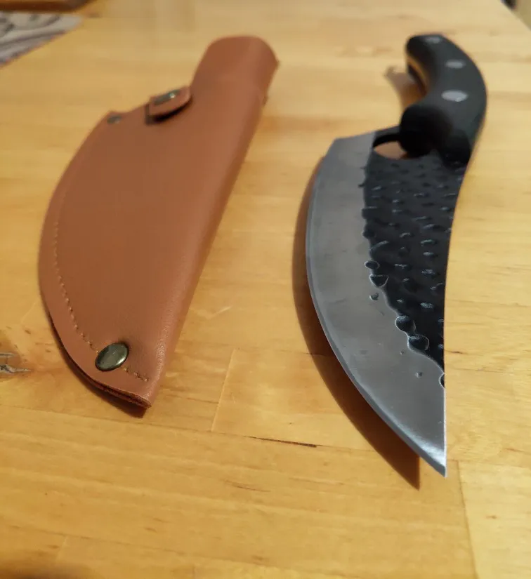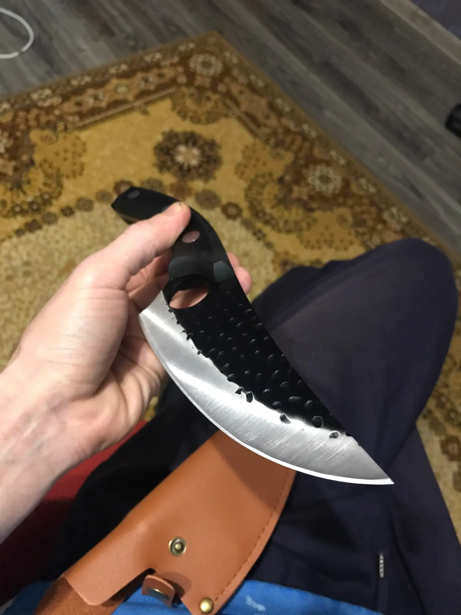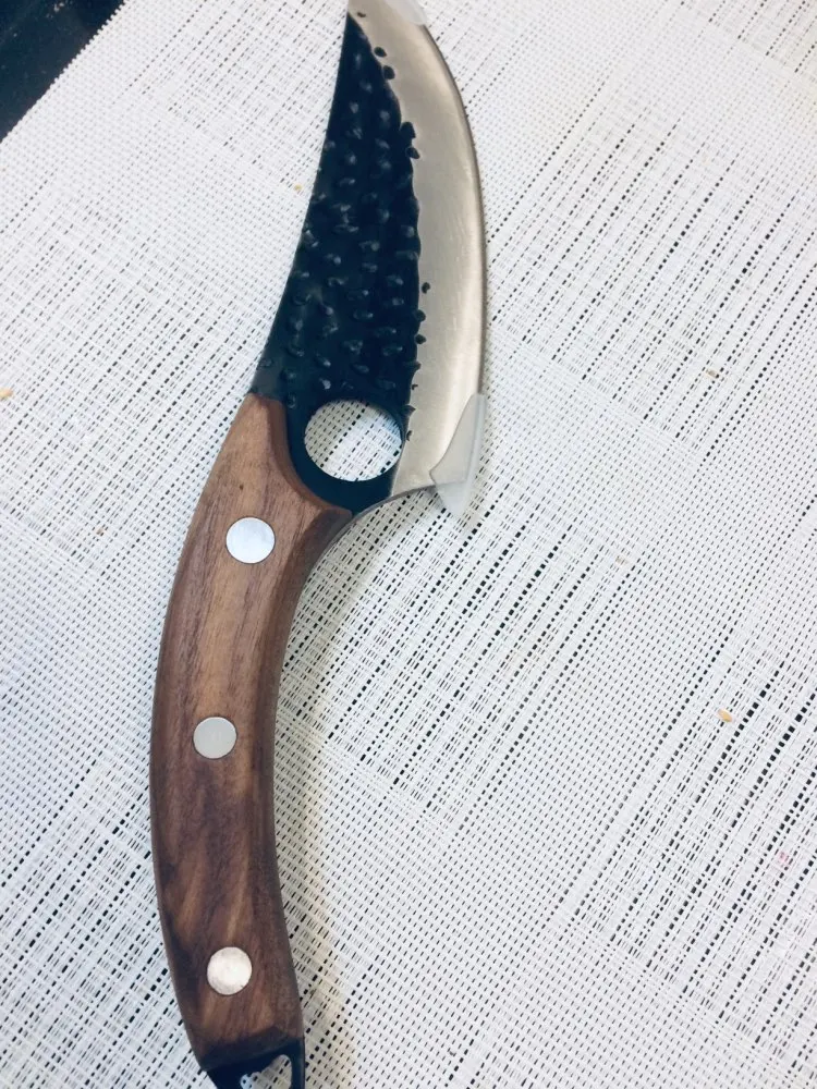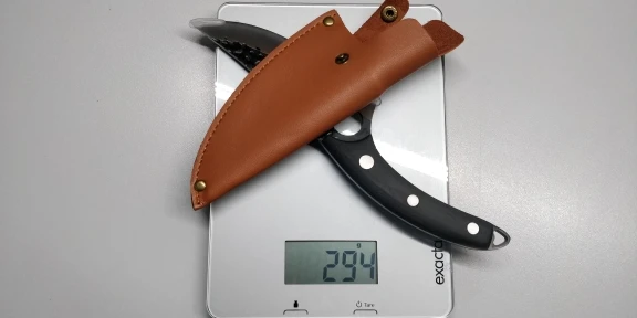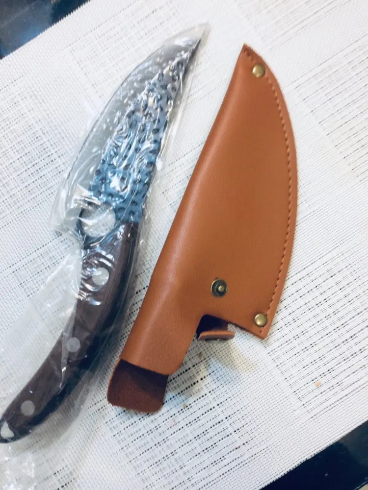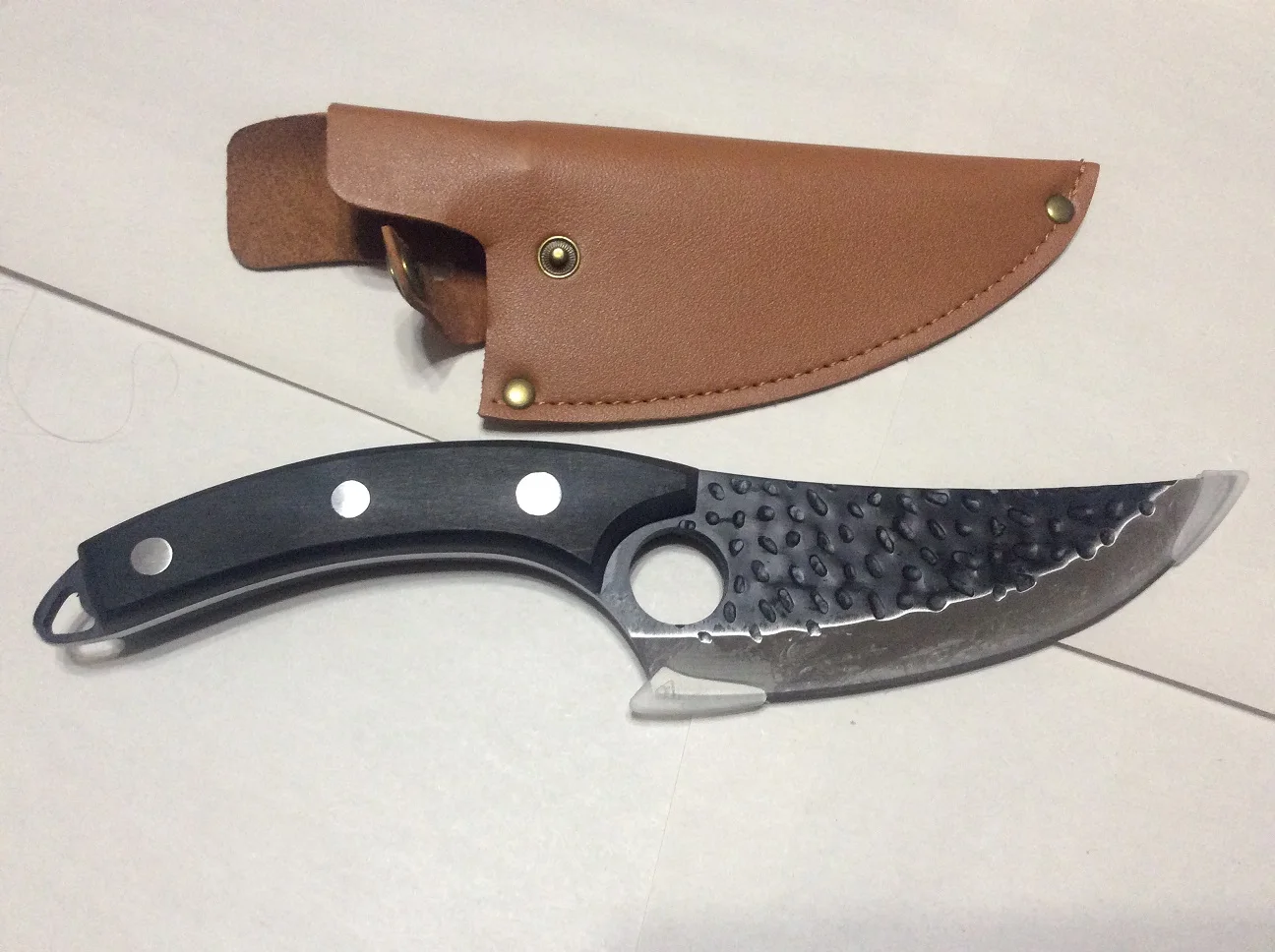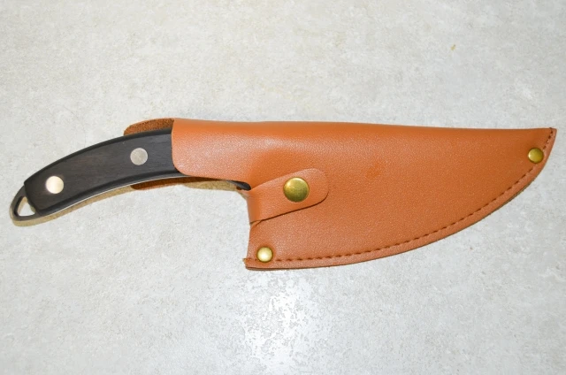 Нож острый, не стоит прикладывать особых усилий, чтобы порезать мясо. Отлично справляется с сухожилиями, косточками. Рукоятка выполнена из дерева, не шершавая, удобно лежит в руке, не соскальзывает. Помимо того, что нож справляется на 5+ со свей задачей, он еще и выглядит красиво. Доступны две комплектации: с чехлом и без. У меня с чехлом, можно брать с собой на природу. Доставка в Краснодарский край составила неделю. Запакован нож был хорошо. Трек-номер отслеживался на всём пути. Посылку принес курьер домой. Нож достойный, нравится. К покупке рекомендую!