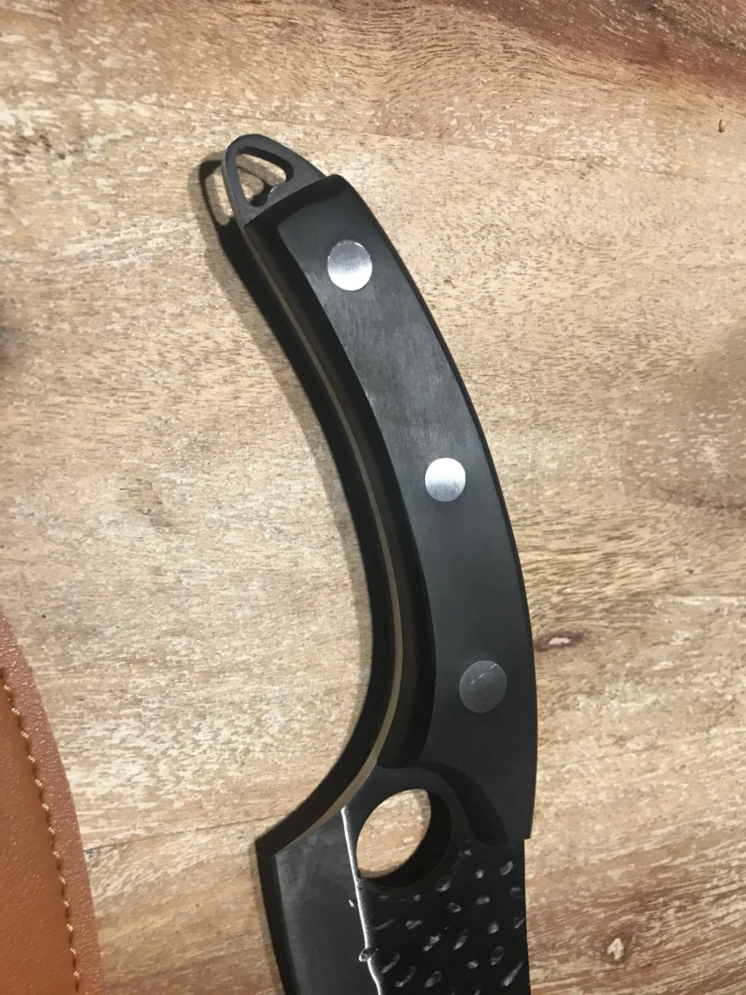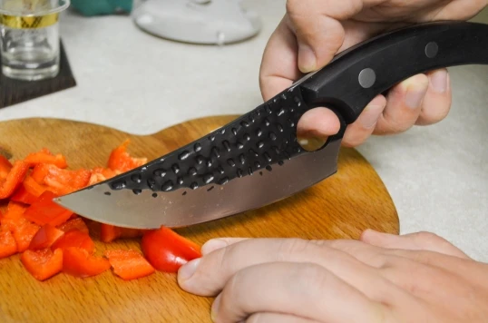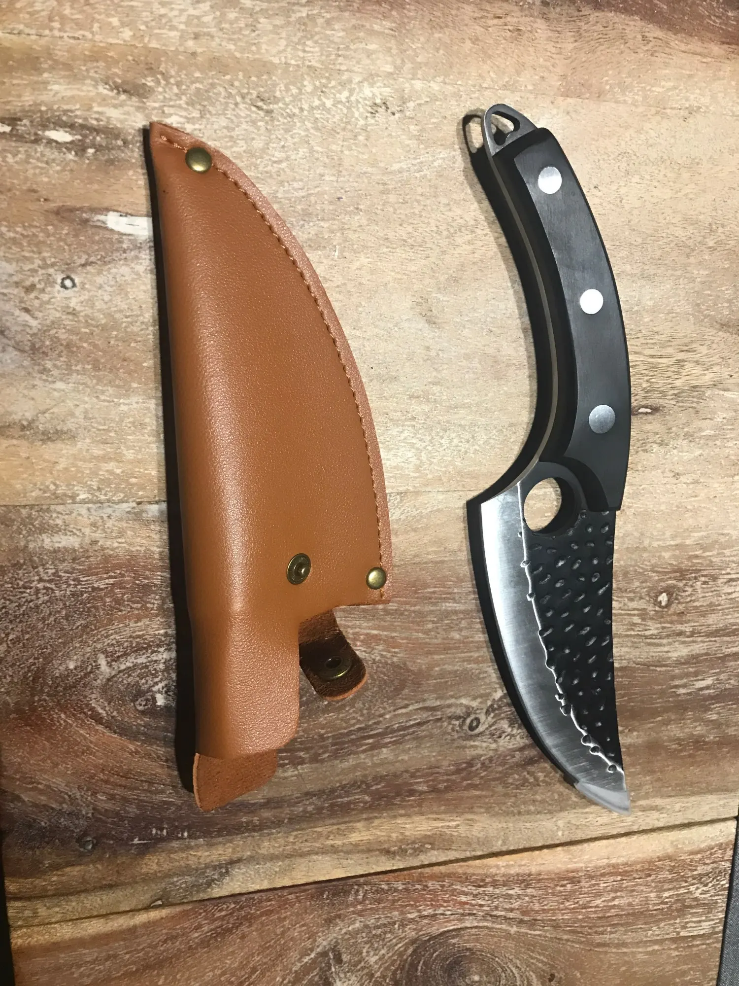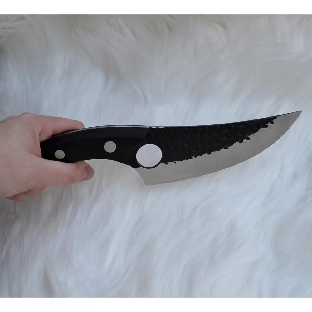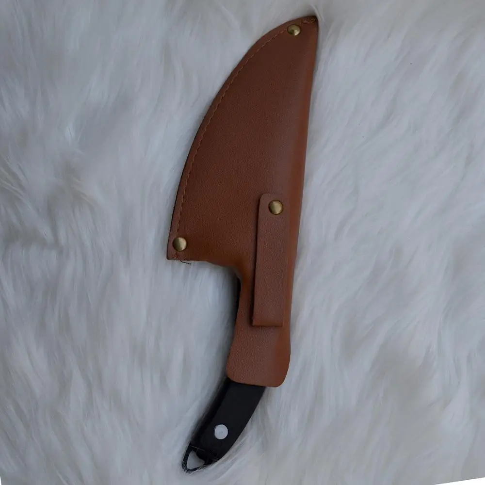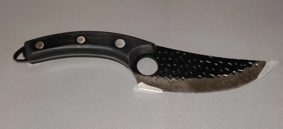 Нож острый, не стоит прикладывать особых усилий, чтобы порезать мясо. Отлично справляется с сухожилиями, косточками. Рукоятка выполнена из дерева, не шершавая, удобно лежит в руке, не соскальзывает. Помимо того, что нож справляется на 5+ со свей задачей, он еще и выглядит красиво. Доступны две комплектации: с чехлом и без. У меня с чехлом, можно брать с собой на природу. Доставка в Краснодарский край составила неделю. Запакован нож был хорошо. Трек-номер отслеживался на всём пути. Посылку принес курьер домой. Нож достойный, нравится. К покупке рекомендую!