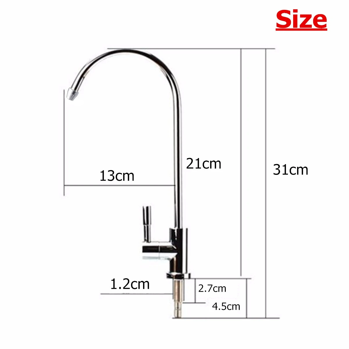Особенности:1. Модель: WR352. Материал: нержавеющая сталь 304, сплав, медный сердечник3. Кран с изящной дугой, с ярким хромированным покрытием4. Подходит для всех систем фильтров для воды5. Используется Подающая трубка 1/4 дюйма, Длинный Носик6. Широко используется в различных типах чистой воды, фильтрах для воды, очистителях воды, смягчителях воды, устройство для электролиза водыКран с вращением на 7,360 °8. Цвет: хром9. Размер: Общая высота: 31 см, длина крана: 13 см * 21 см Посылка1x1/4 ''кран для фильтра воды RO1 сумка для аксессуаров