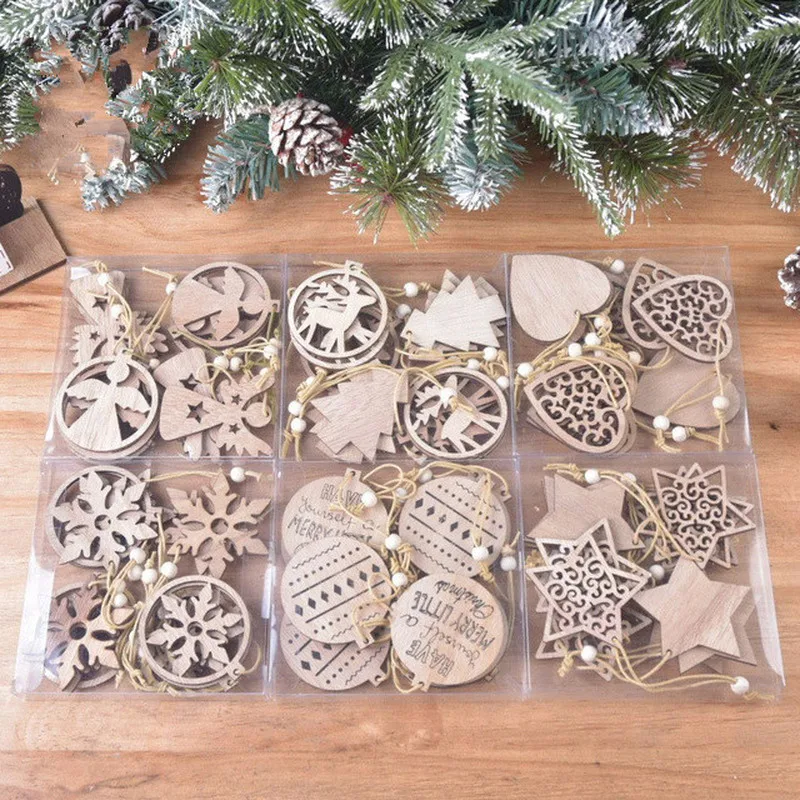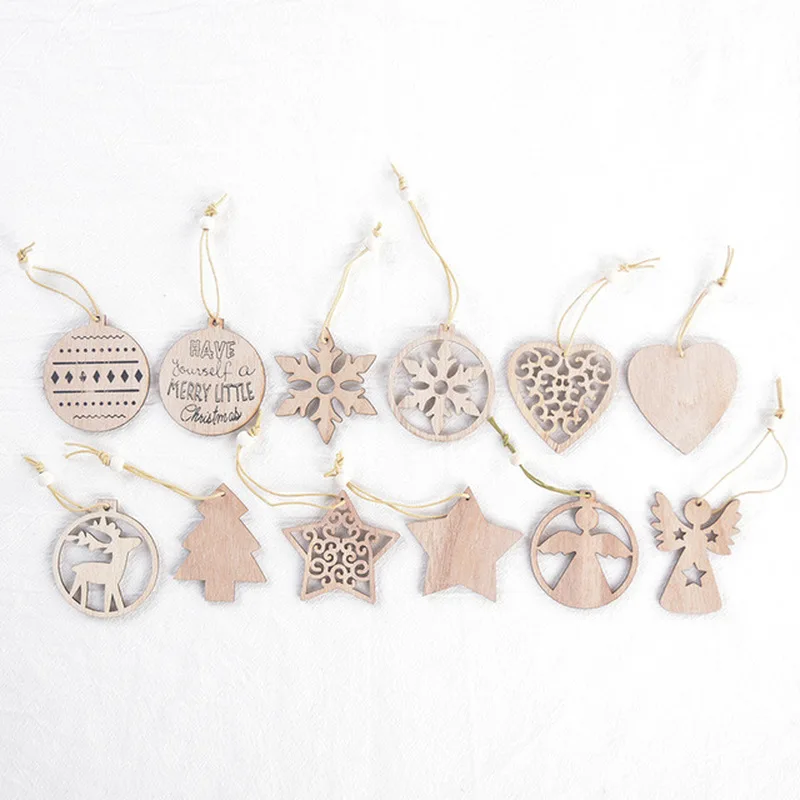 12 шт.корт. Рождественские деревянные подвески, Подвесные Украшения для рождественской елки, деревянные поделки сделай сам для дома, рождественские украшения для новогодней вечеринки