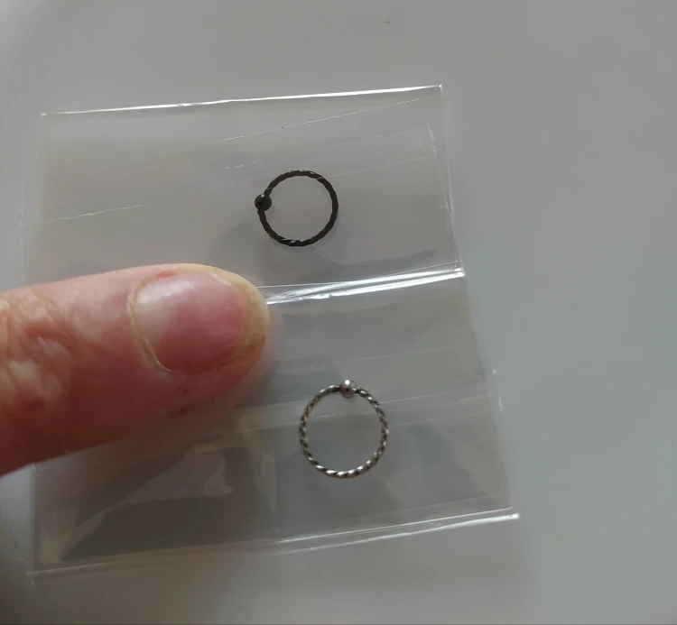 Кольца пришли очень быстро, металл хороший, не окисляется, но у меня оказалась аллергия на этот сплав, очень жаль, в носике украшение смотрелось просто