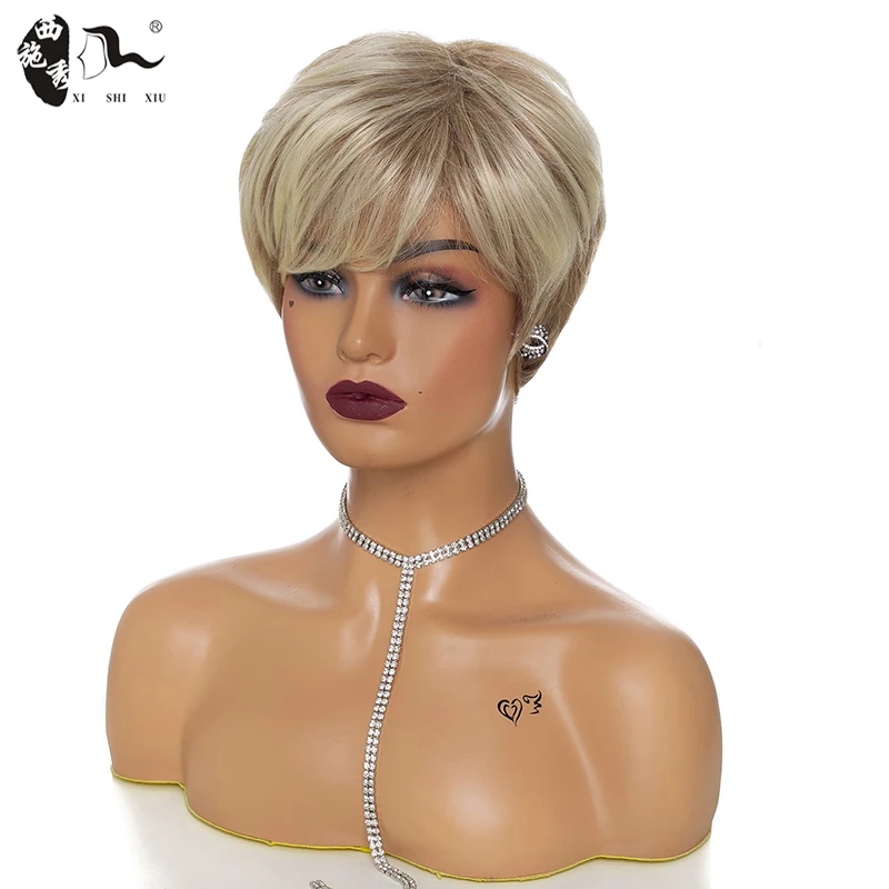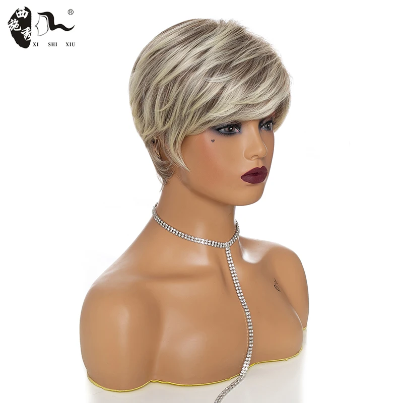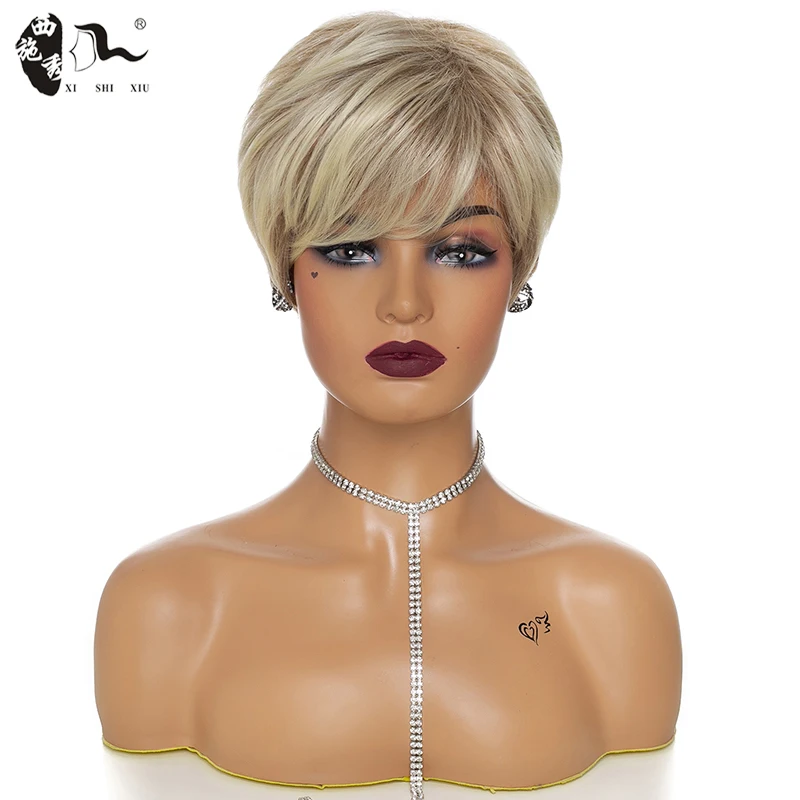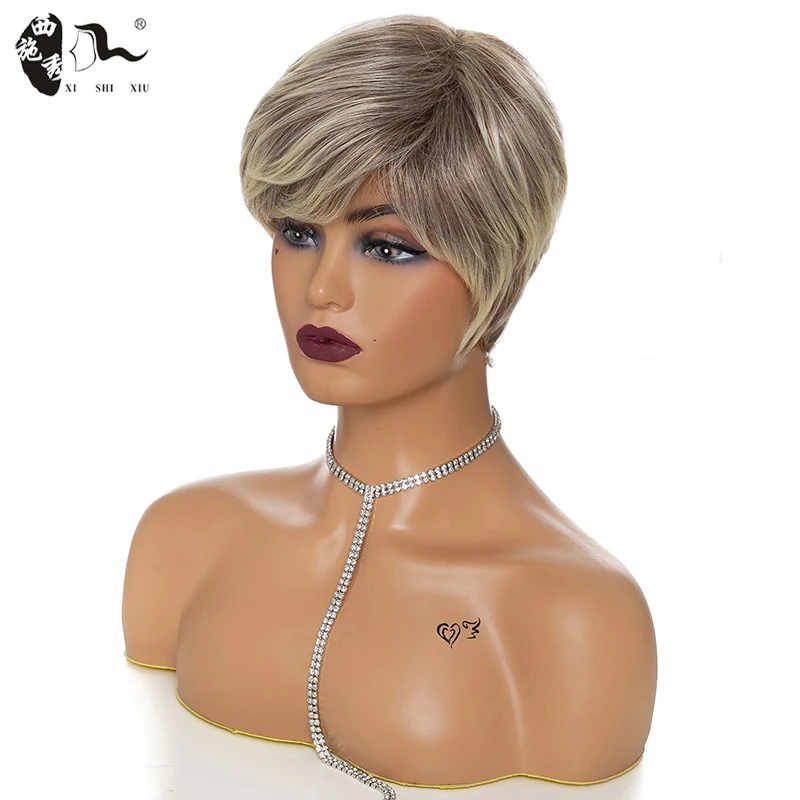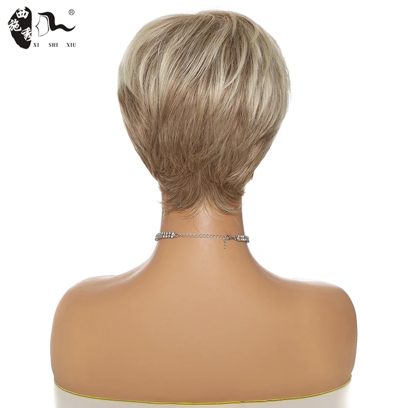 Женские синтетические короткие светлые парики с эффектом омбре, парики из натуральных волос, парик из термостойких волос для белых женщин, волосы XISHIXIUHAIR