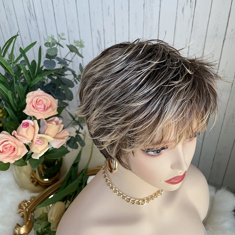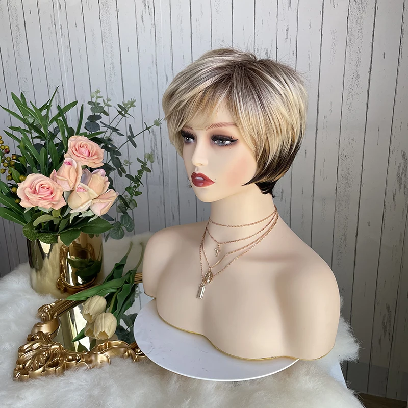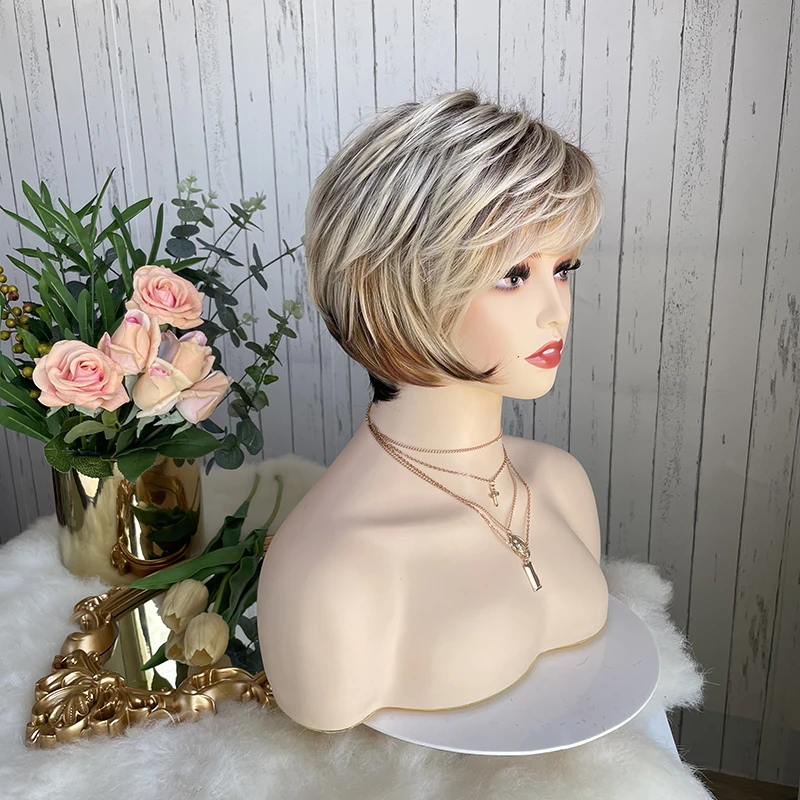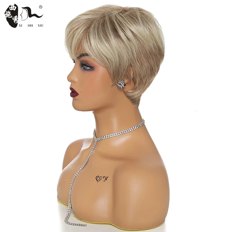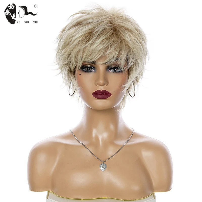 Женские синтетические короткие светлые парики с эффектом омбре, парики из натуральных волос, парик из термостойких волос для белых женщин, волосы XISHIXIUHAIR