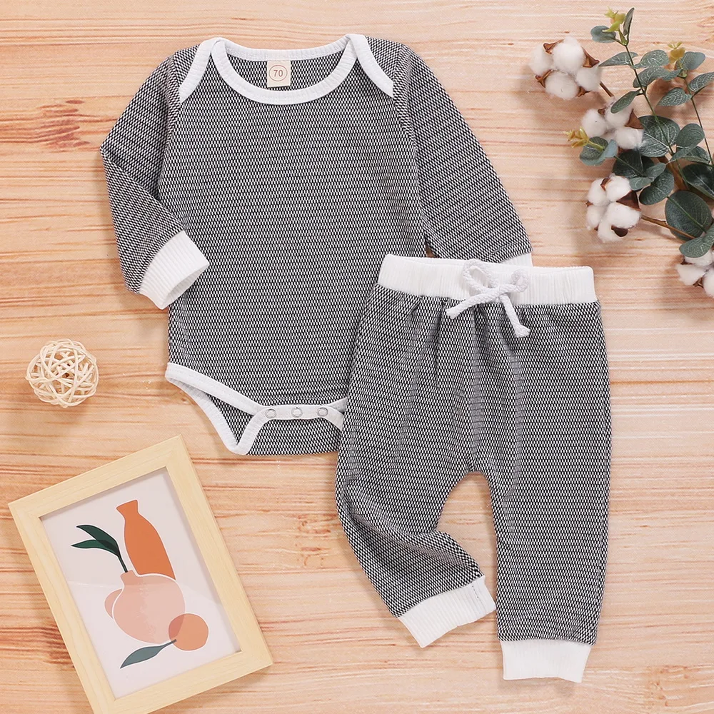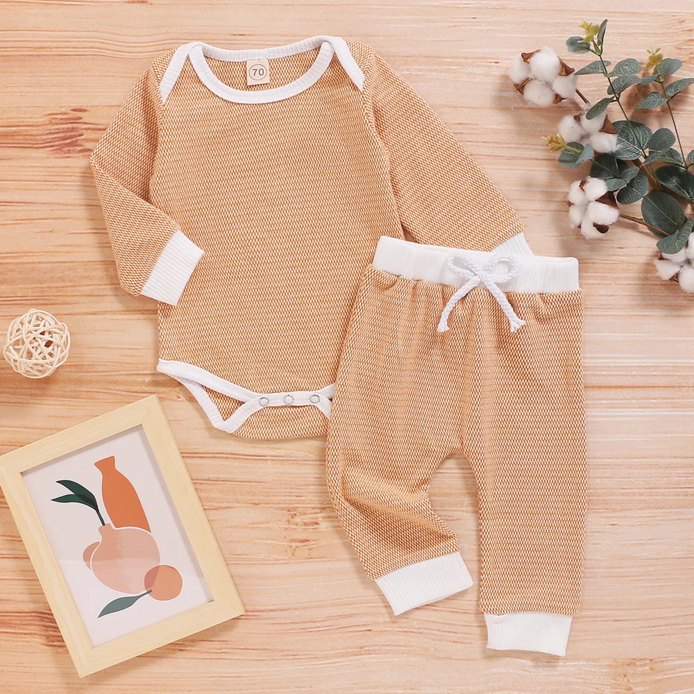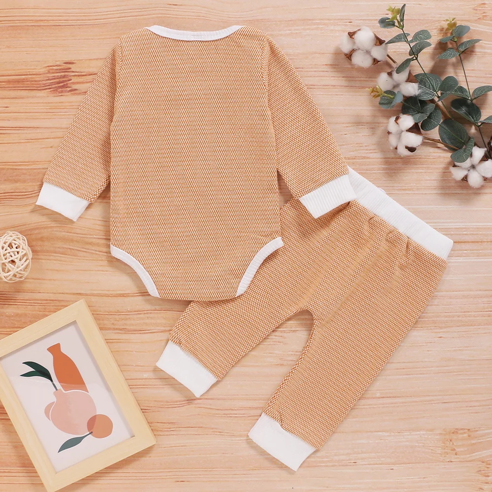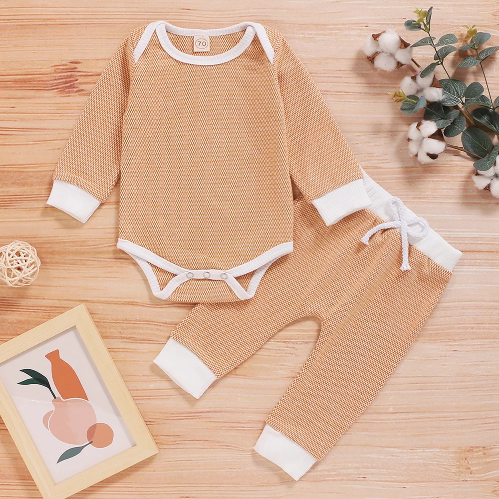 Осенний вязаный комплект детской одежды для девочек из 2 предметов боди с длинным рукавом + брюки костюм для младенцев осенняя одежда для маленьких мальчиков и девочек D20