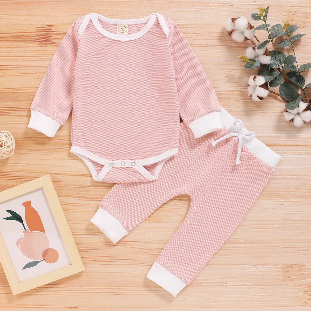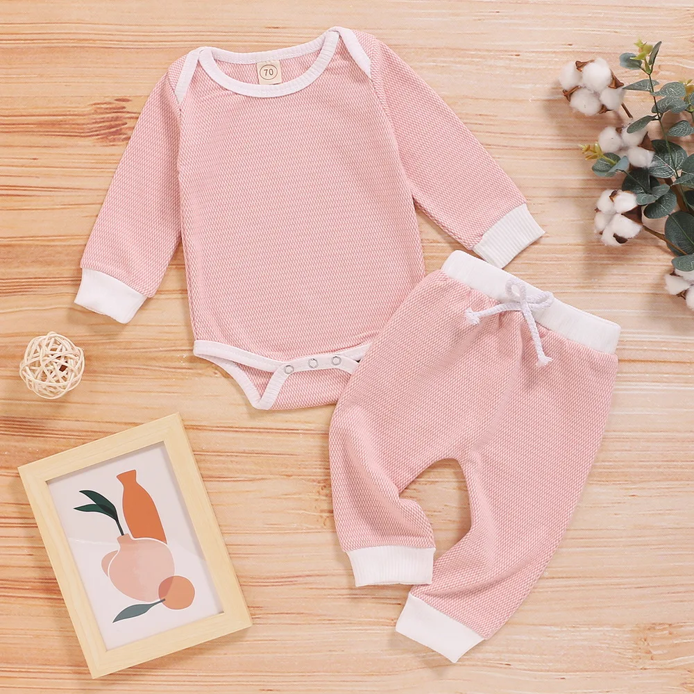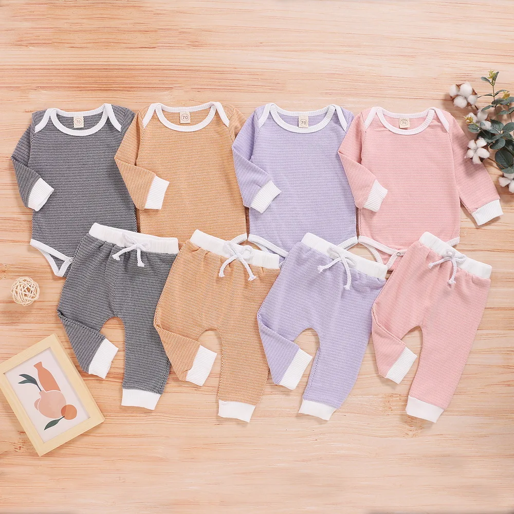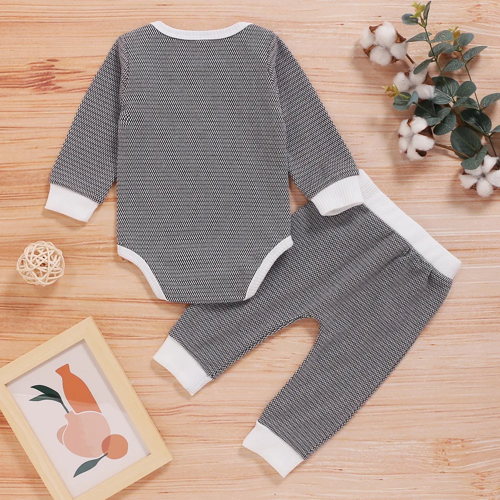 Осенний вязаный комплект детской одежды для девочек из 2 предметов боди с длинным рукавом + брюки костюм для младенцев осенняя одежда для маленьких мальчиков и девочек D20
