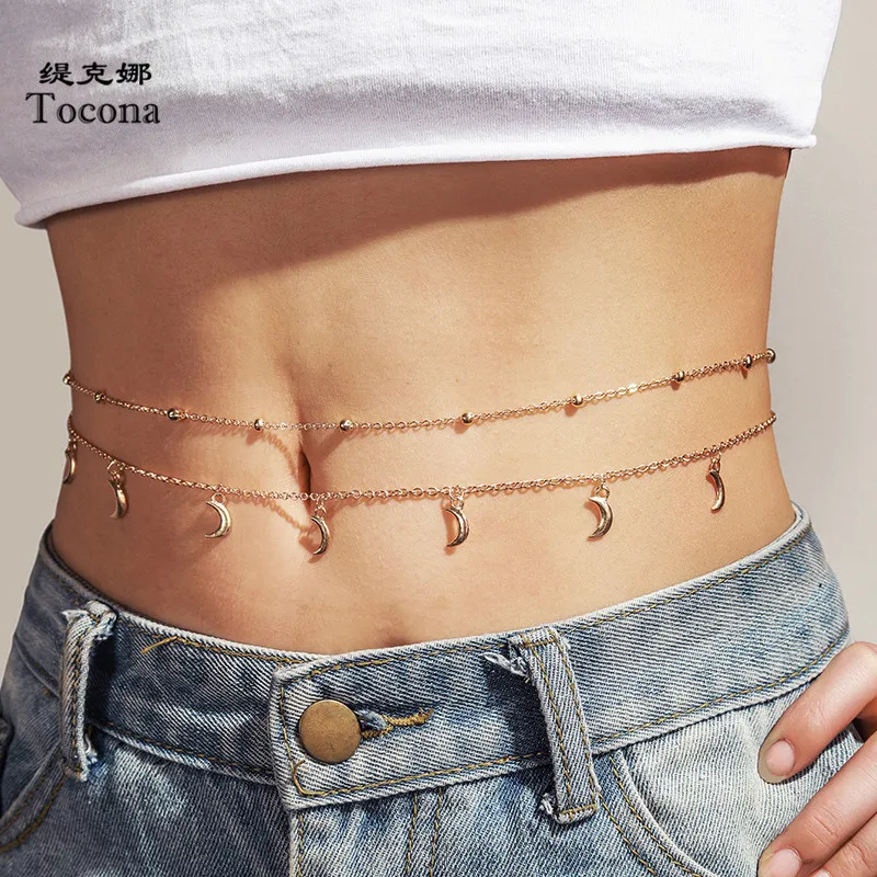 Цепочки Tocona в богемном стиле для женщин, очаровательные пикантные цепочки с кисточками в виде месяца, бусины золотого цвета, металлический корпус, ювелирные изделия, аксессуары 14520