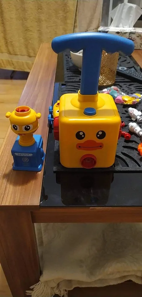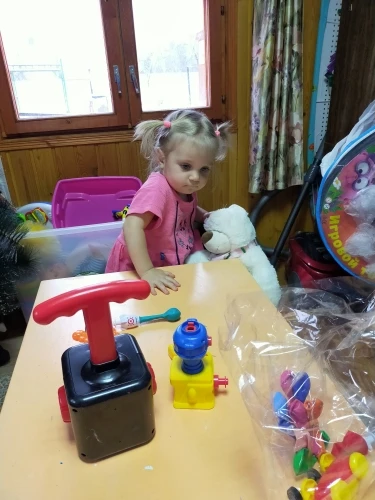 Пришла игрушка неисправная ,не накачивала шарик . Открыла спор ,но потом раскрутила и выяснилось ,что соскочили шланг .Мы все починили и теперь будет внуку интересный подарок под ёлку