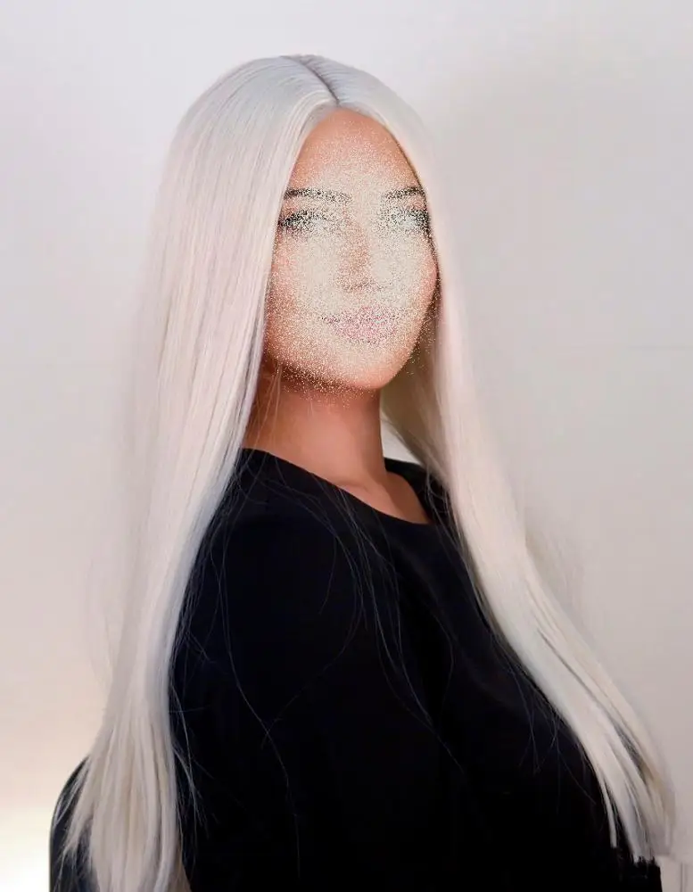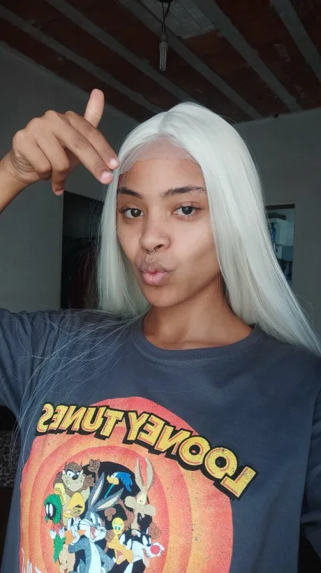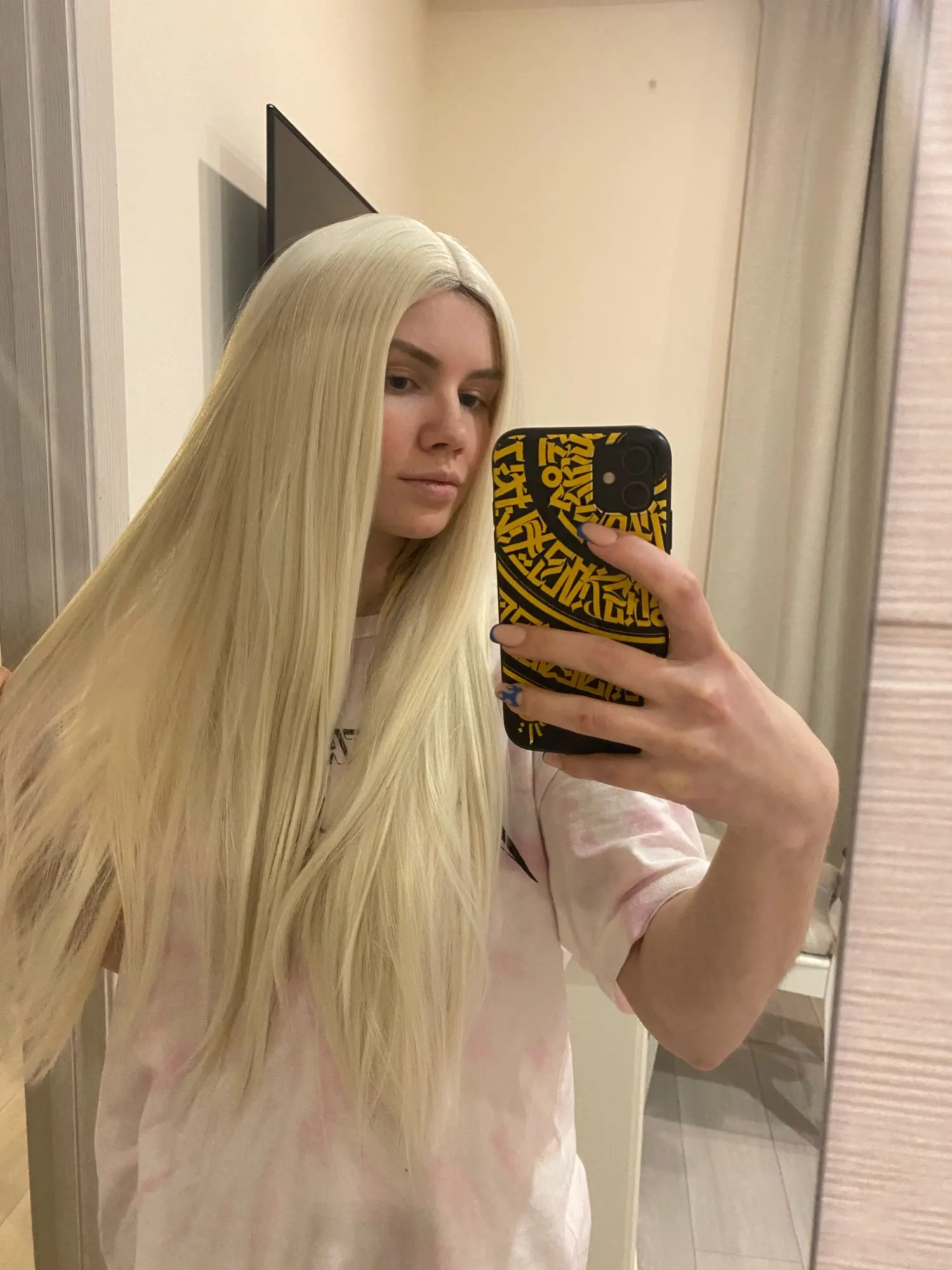 шикарный лейс фронт парик. Сделан очень качественно. Все аккуратно прошито. Сеточка по всей фронтальной части и на линии пробора. Есть заколки и бретели. На голове сидит удобно, не слетает. Выглядит супер. Волосы густые, без проплешин, длинные и гладкие. Цвет чистый белый, без желтизны. Рекомендую магазин!