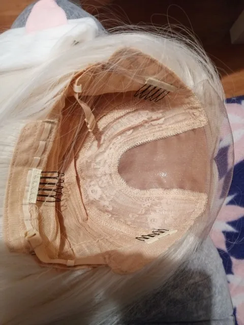 Очень красивый парик для косплея. Вы можете увидеть сетчатый корыт спины, но качество волос удовлетворительное.