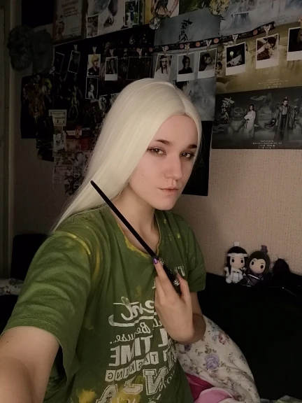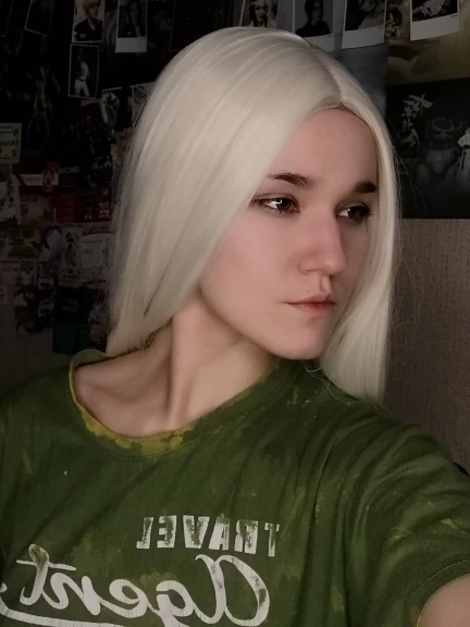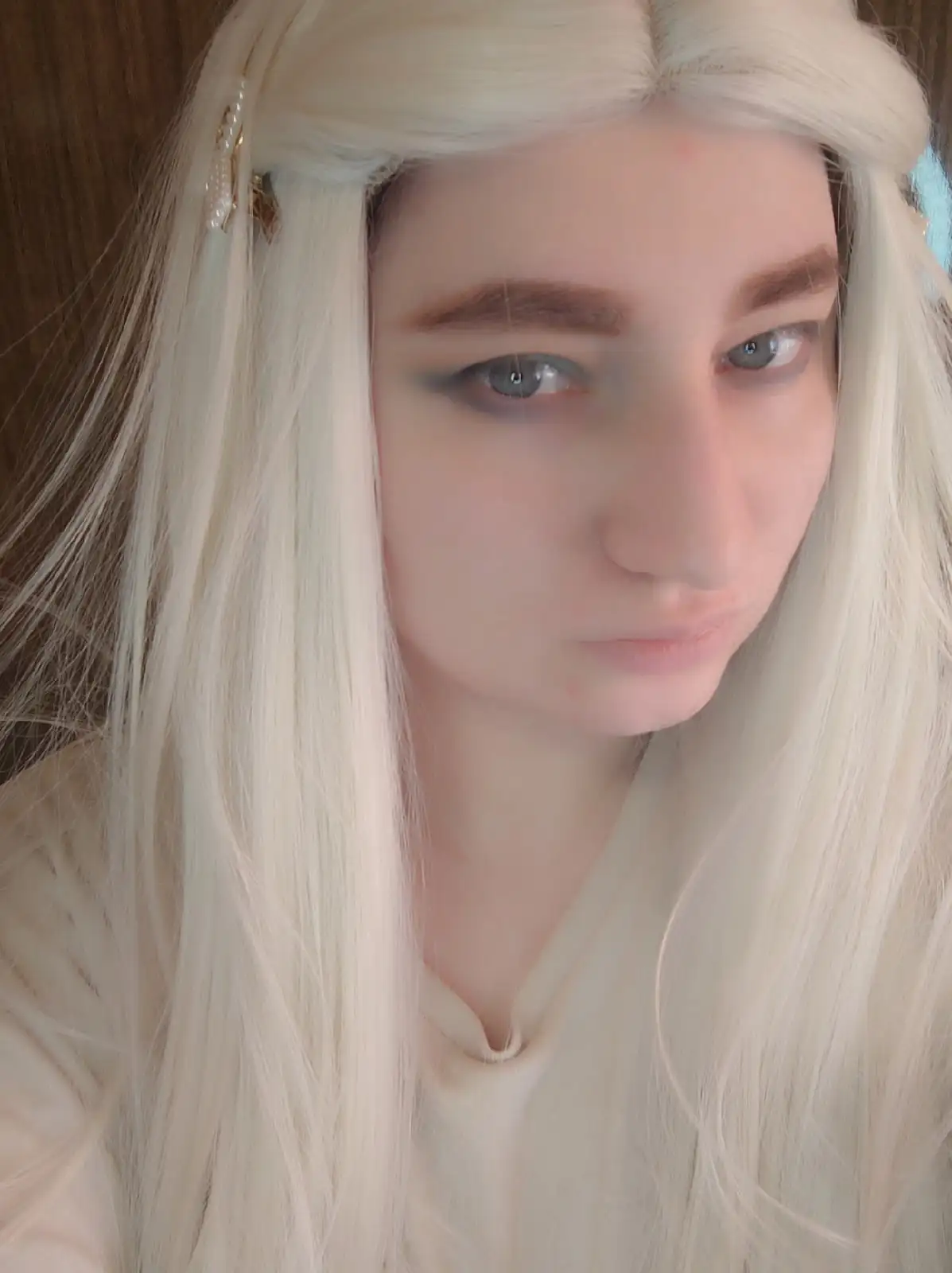 Благодаря этому парику у меня получилась успешная тематическая игра. Он очень красивый. Картина выглядит чисто-белой, но на самом деле в ней есть немного платины. Он выглядит очень мягким, и на свету нет искр, как у природы. Волосы такие же, очень податливые.Я ношу их весь день, а еще продавец подарил кучу небольших подарков, сеточки для волос, очищающую вату и кисточку для макияжа, которые в России купить непросто.