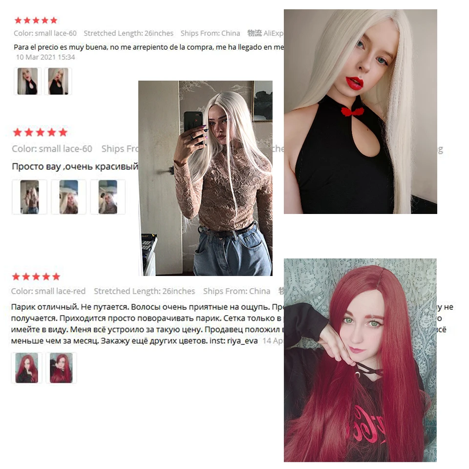 Заказала два парика. Белый и фиолетовый. Оба просто потрясающие) цвета очень красивые, однотонные, есть сеточка, пробор смотрится ооочень естественно) я всем довольна, буду заказывать у продавца ещё) также положили много подарков, большое спасибо) мой inst any.mure