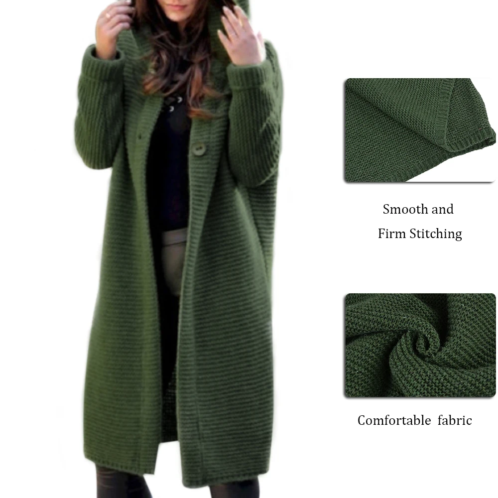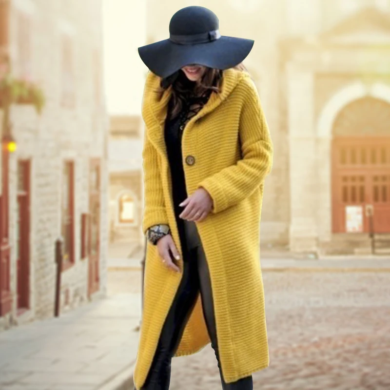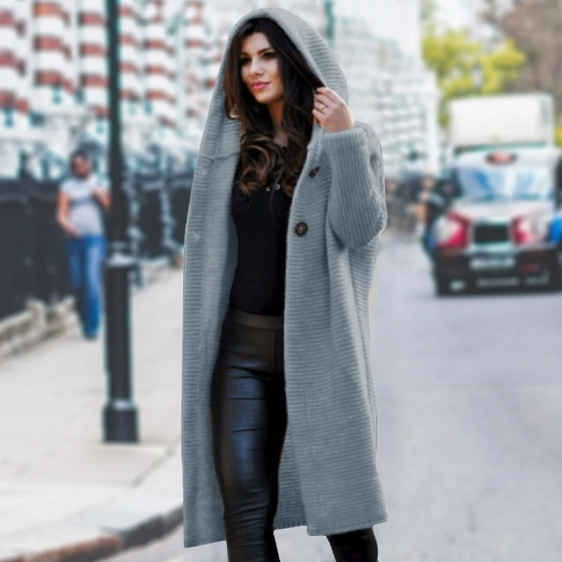 Женский вязаный кардиган на пуговицах, повседневный длинный свитер с длинным рукавом и капюшоном, Осень-прочные кардиганы, 2020