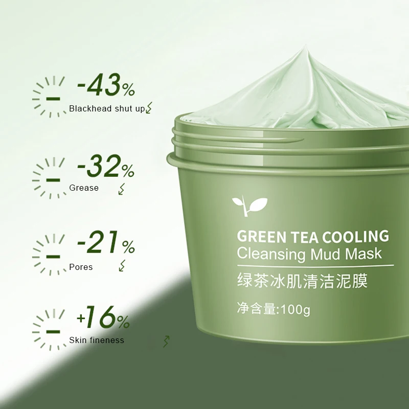 Зеленая чайная ледяная маска для мышечной грязи, маска для лица, глубокое очищение, удаление черных точек, усадка, фотомаска, уход за лицом TSLM1