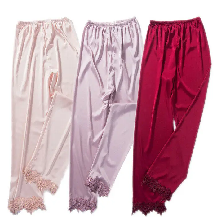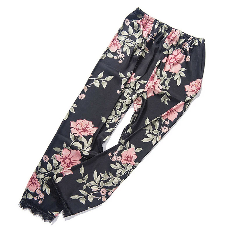 Женская шелковая атласная пижама, кружевные Шелковые штаны с цветочным рисунком, Пижама, одежда для сна, домашняя одежда