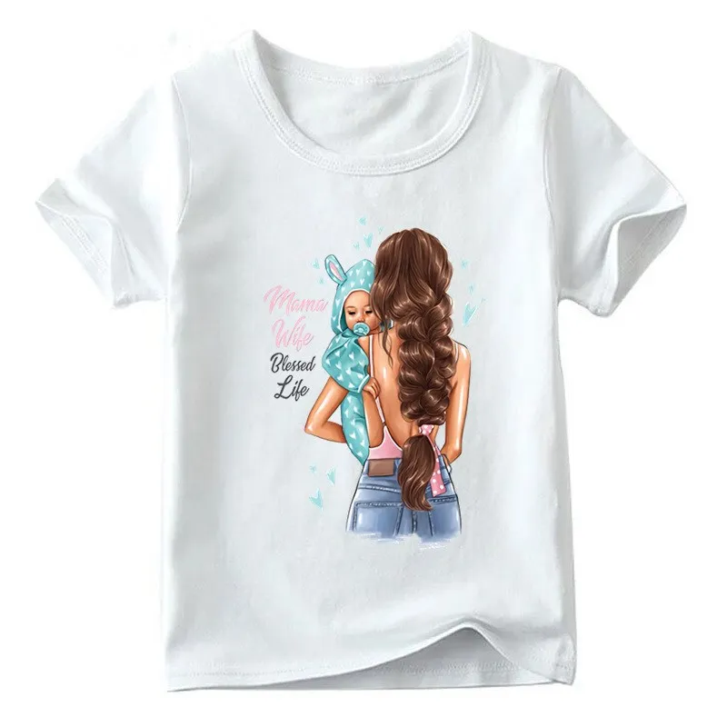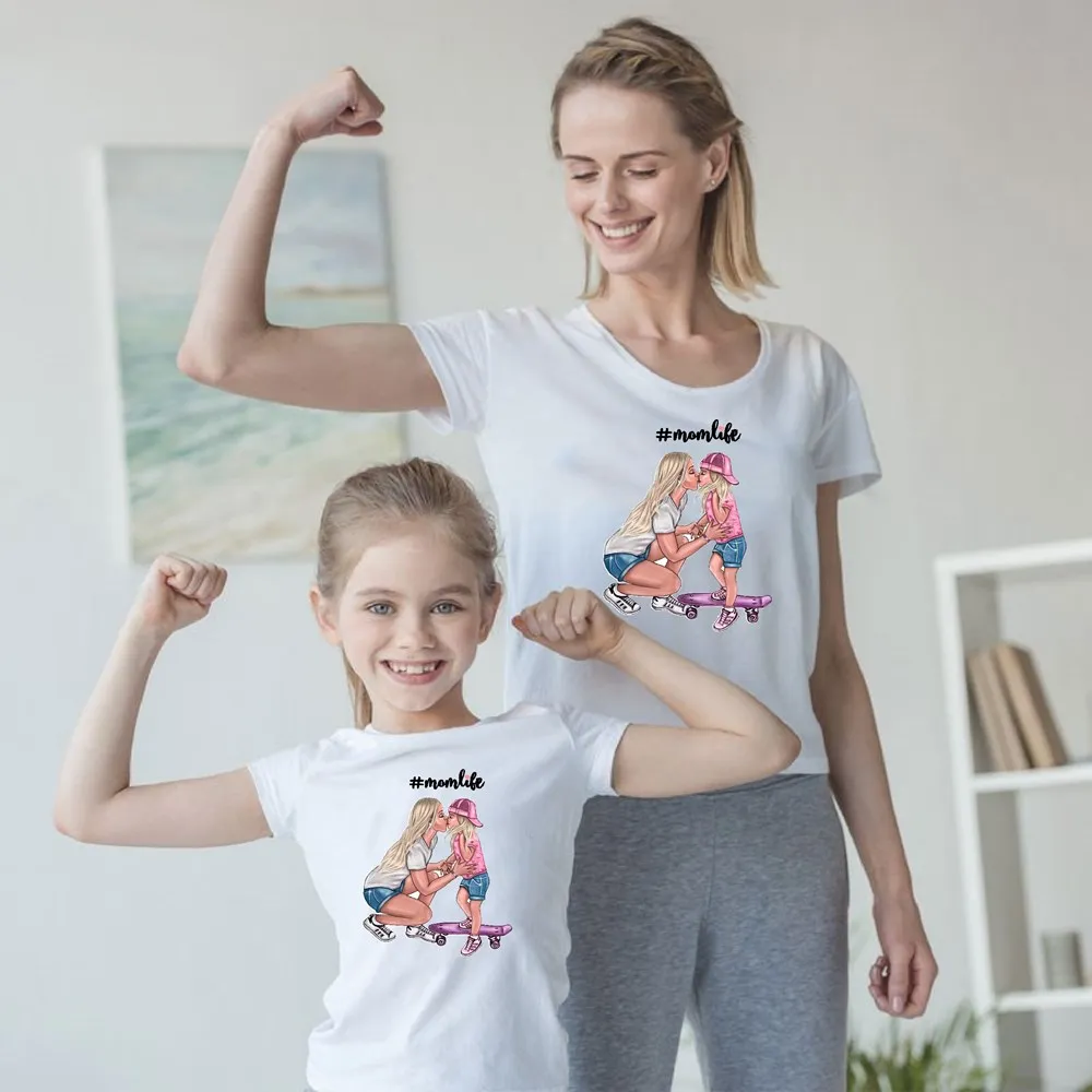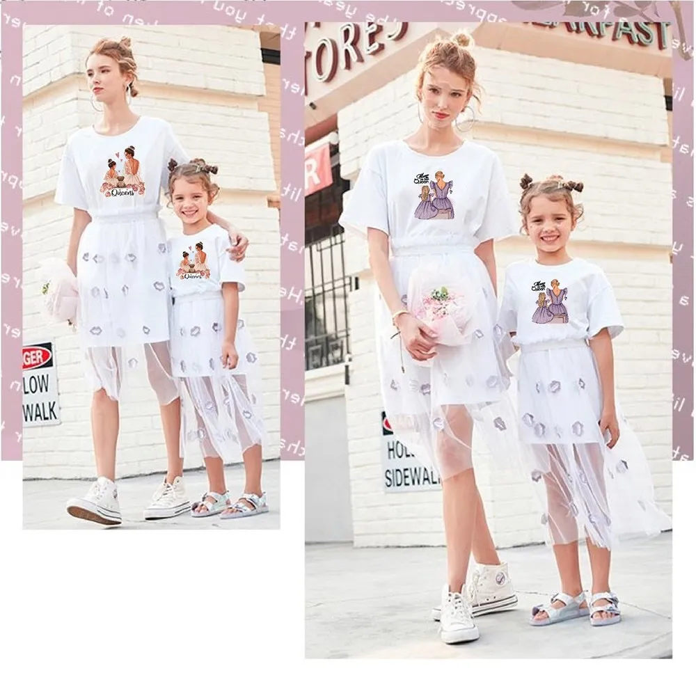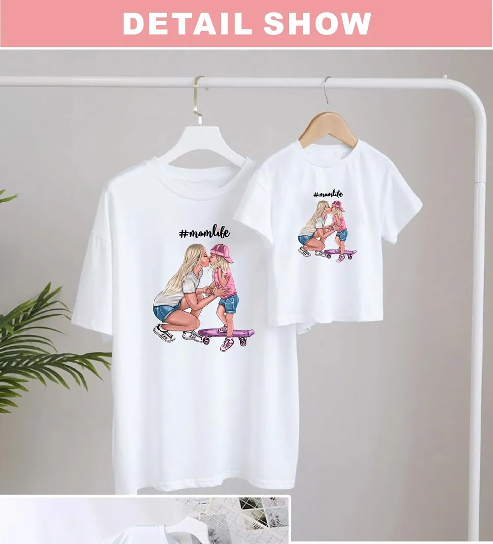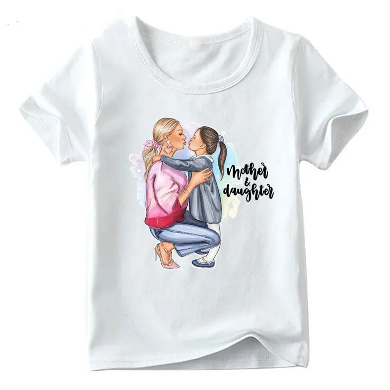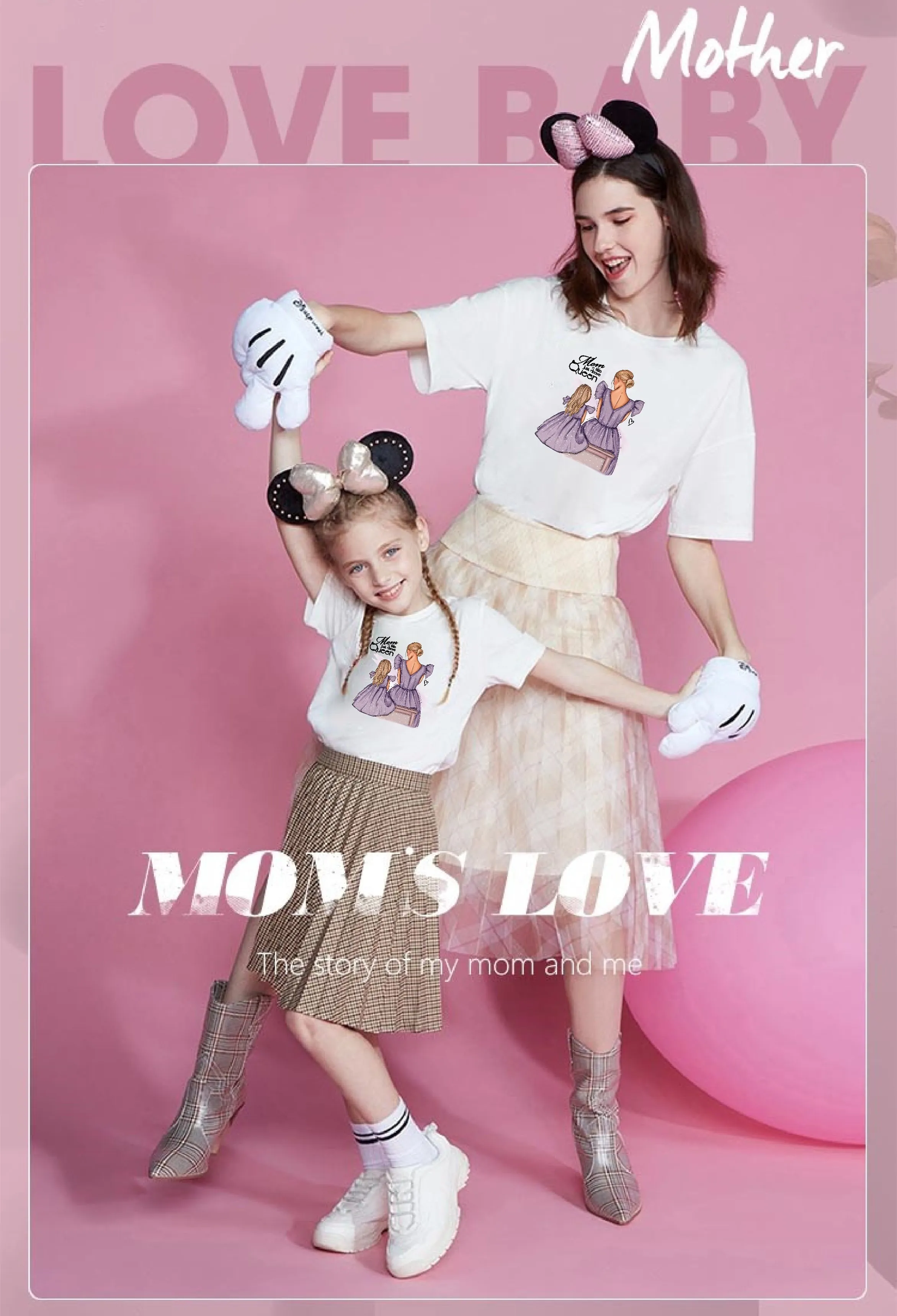 Модная Одинаковая одежда для мамы и дочки с коротким рукавом и круглым вырезом Мультяшные Семейные одинаковые наряды подарок на день матери