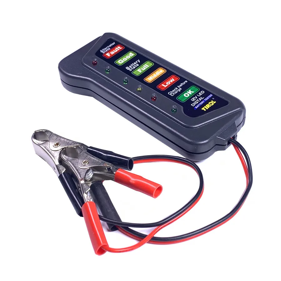 Тестер автомобильного аккумулятора, 12 В, проверка состояния автомобильного аккумулятора и зарядки генератора переменного тока, 6 светодиодный ных дисплеев, индикация аккумулятора, диагностический инструмент для автомобиля