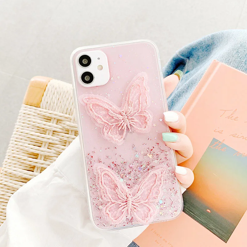 Милый 3D чехол с бабочкой для iPhone XR, силиконовый чехол с блестк...