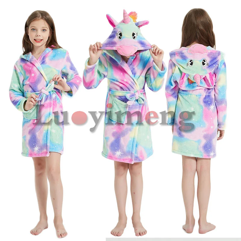 Халаты с капюшоном в виде единорога, детские халаты, детский фланел...