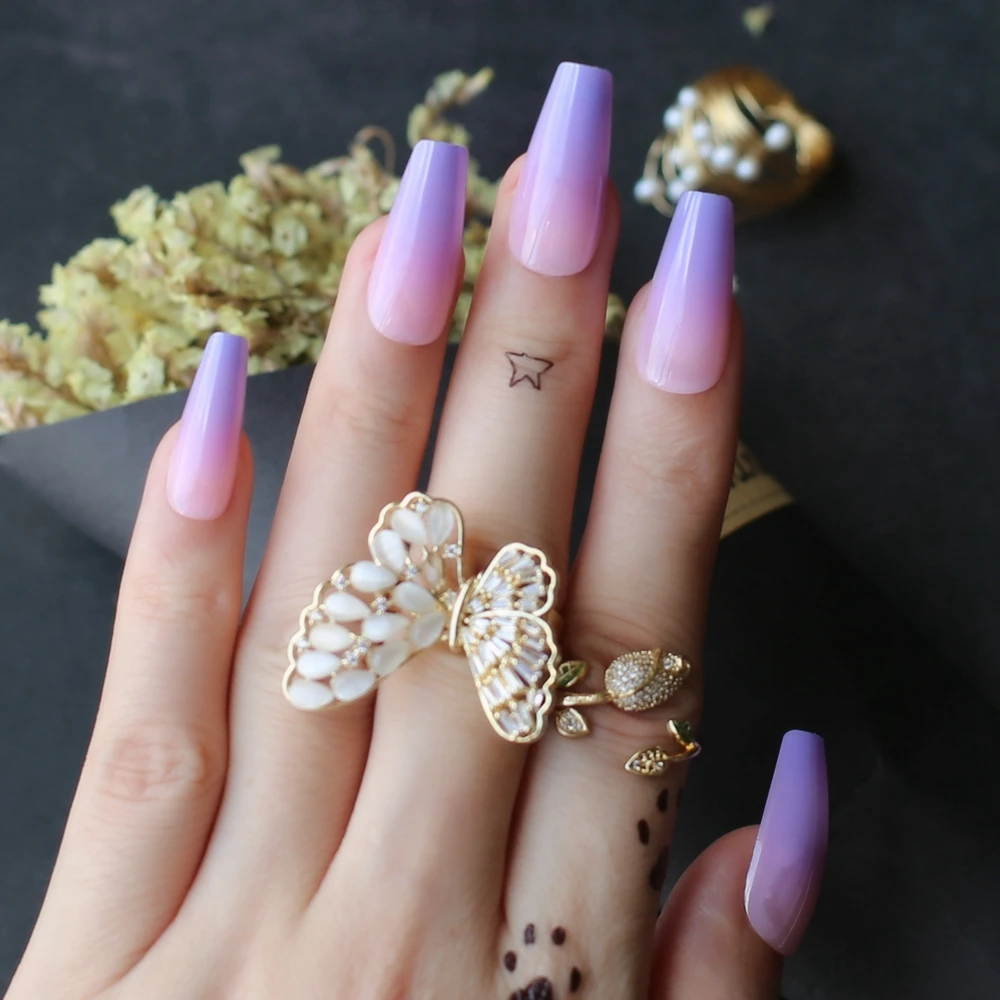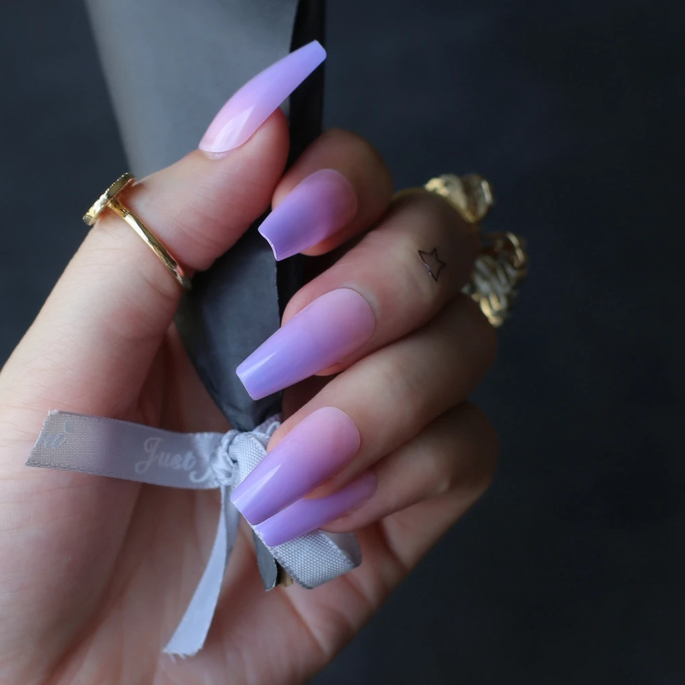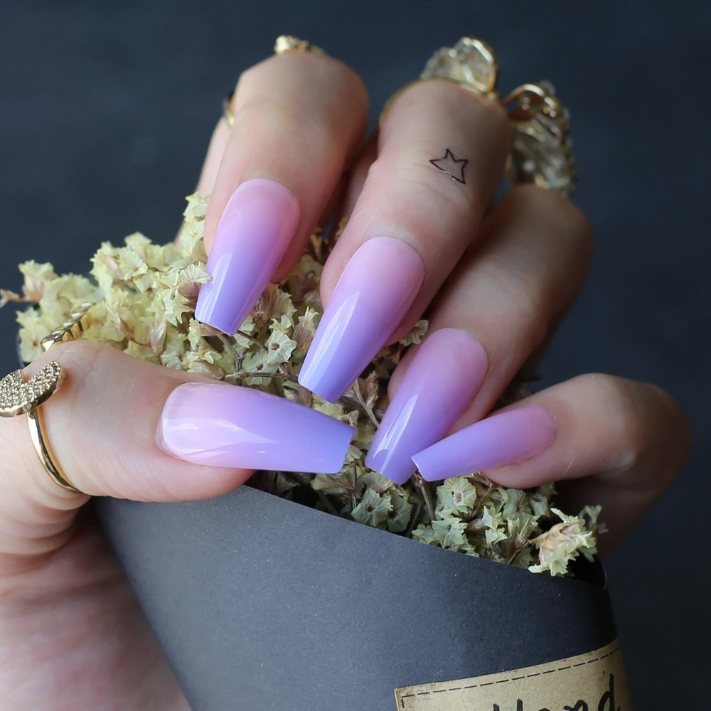 Лавандовый Омбре гроб накладные ногти фиолетовый градиент розовый Средний гель Поддельные nais повседневная одежда