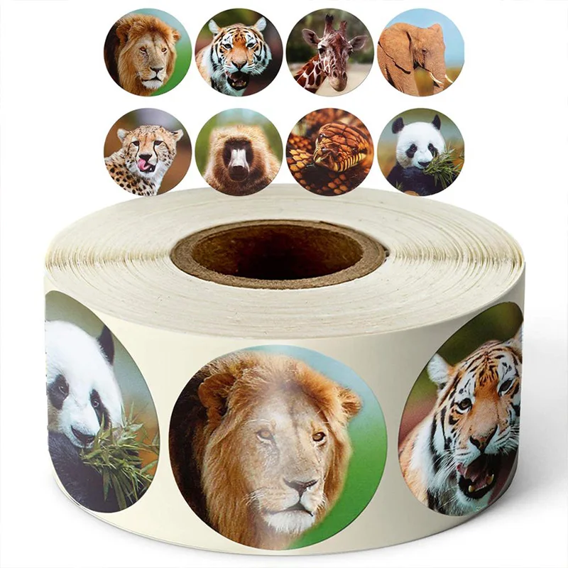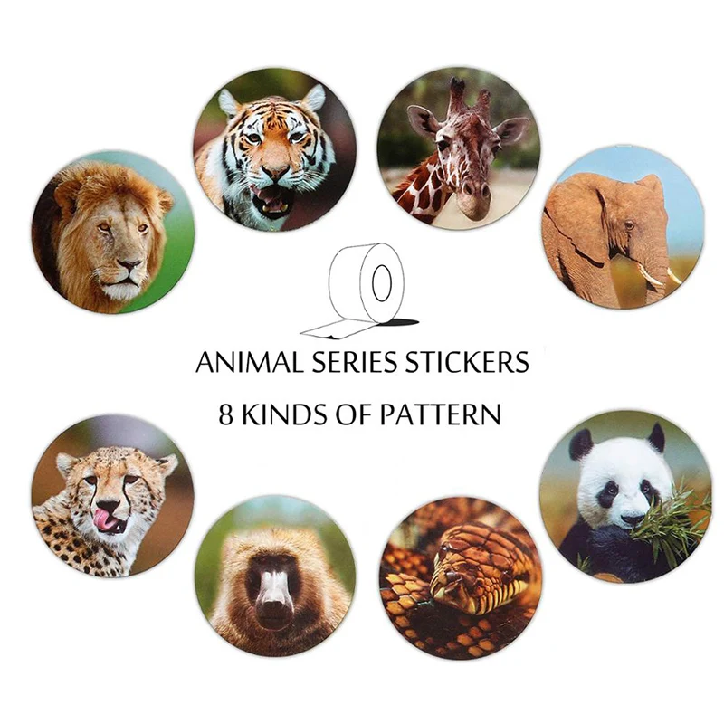 Наклейки круглые в виде животных, 8 видов конструкций шт.рулон, 1 дюйм, 500