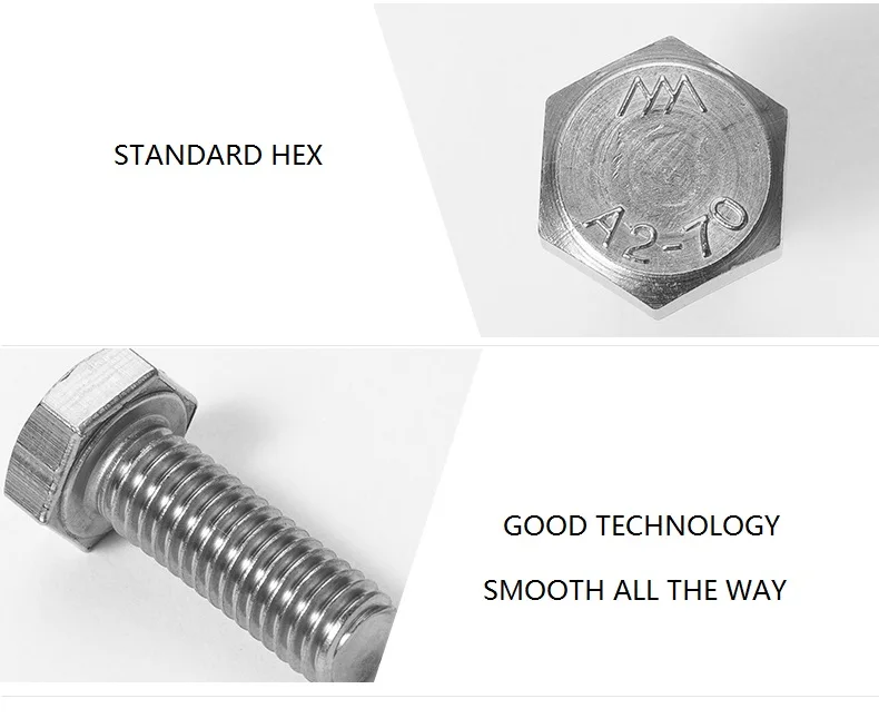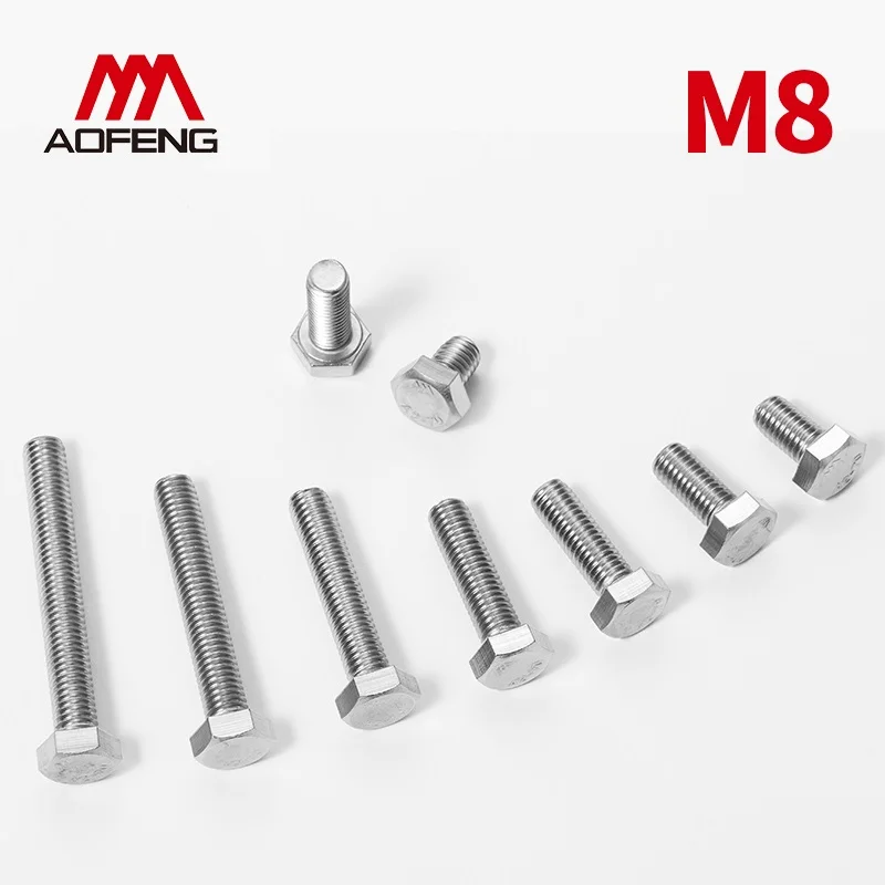 Винты M8 304 с шестигранной головкой и резьбой из нержавеющей стали стандарта раньше M8 * 10 мм 30 мм 50 мм 70 мм 100 мм 150 мм 200 мм 220 мм DIN933 болты