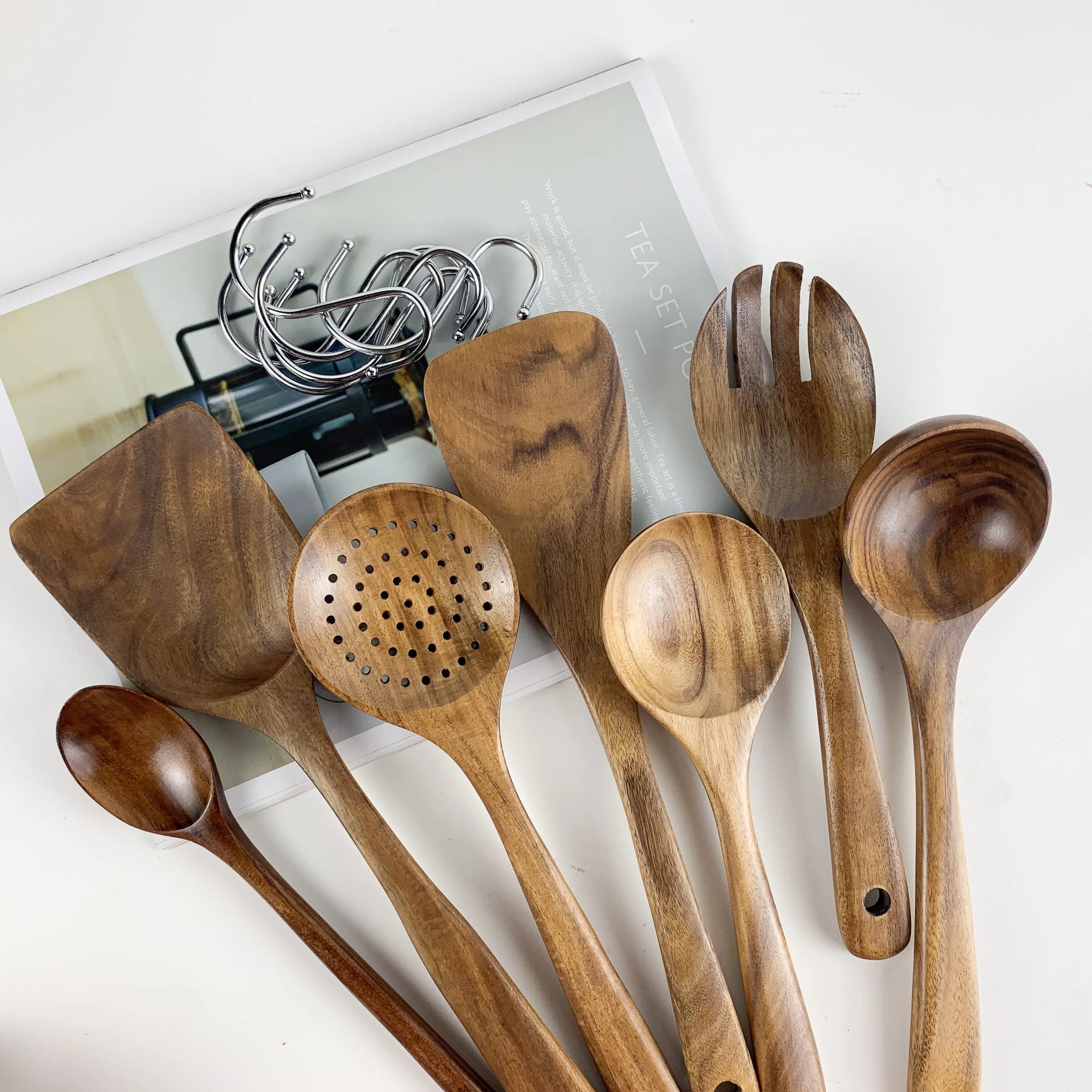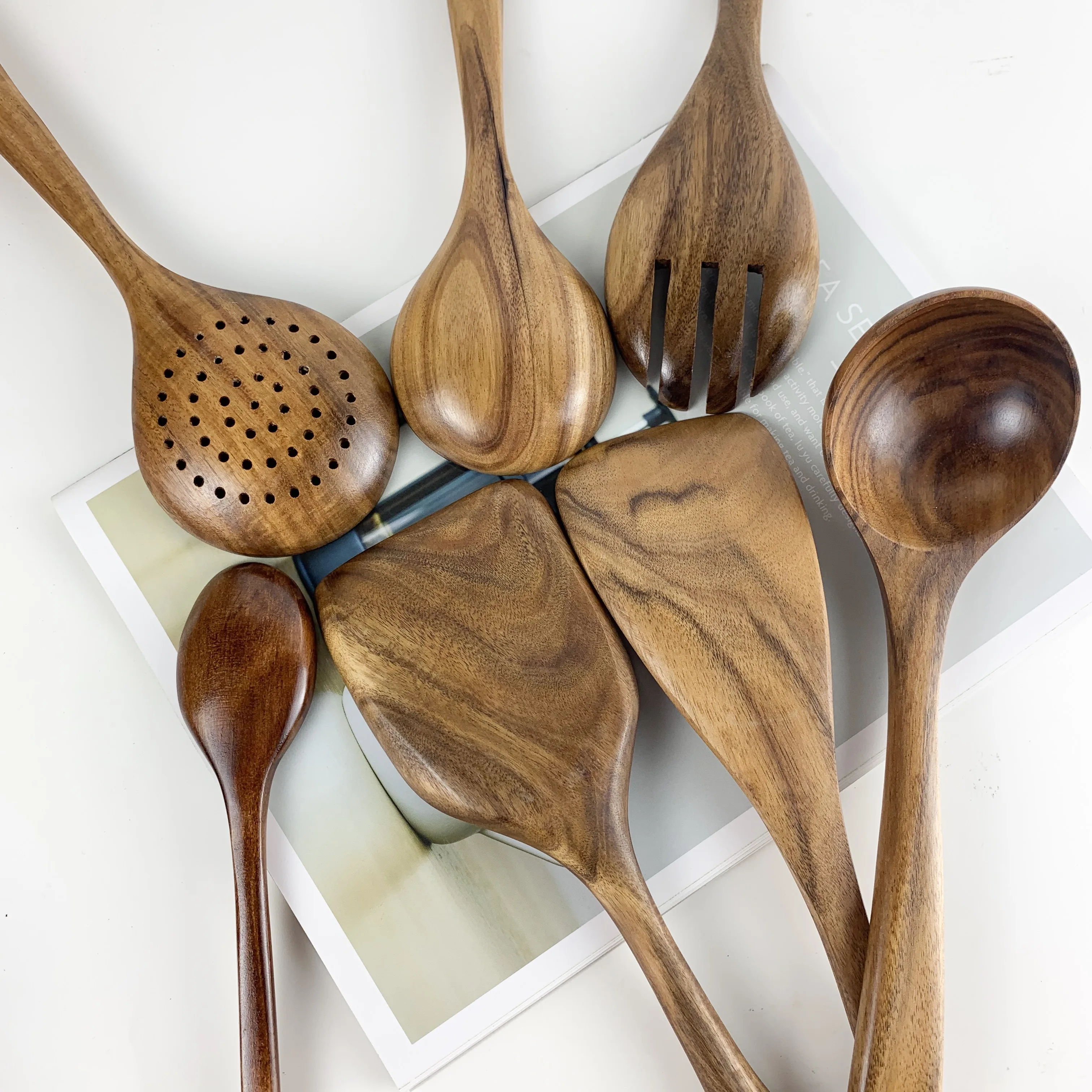Тиковая посуда из натурального дерева, ложка, половник-дуршлаг, Специальная Нано-шумовка для супа, кухонная ложка, деревянный кухонный набор инструментов