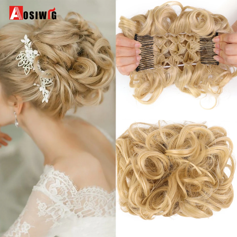 AOSIWIG, длинные вьющиеся шиньоны, синтетические волосы для невесты, заколка для волос, наращивание хвоста, искусственные волосы для женщин