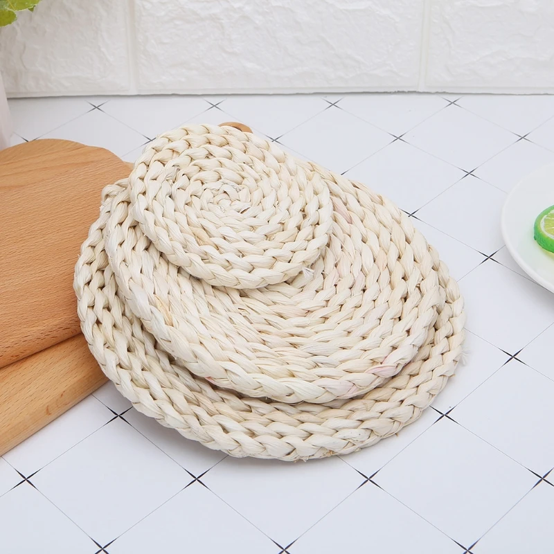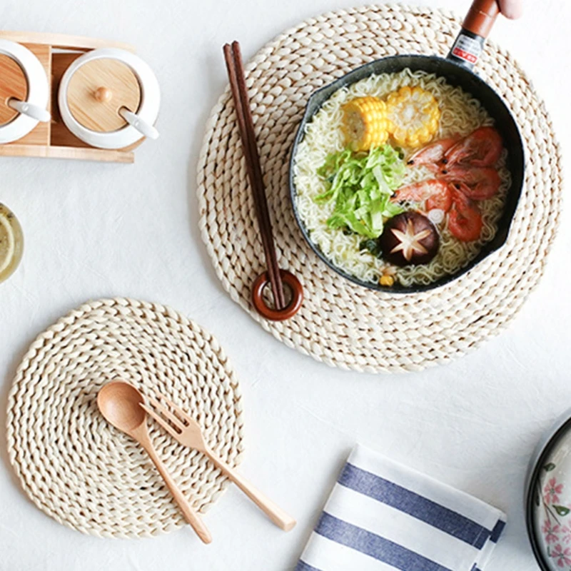 Круглый место коврик соломы ткань кухонная салфетка-подставка чашка теплоизолирующая подставка теплоизоляция