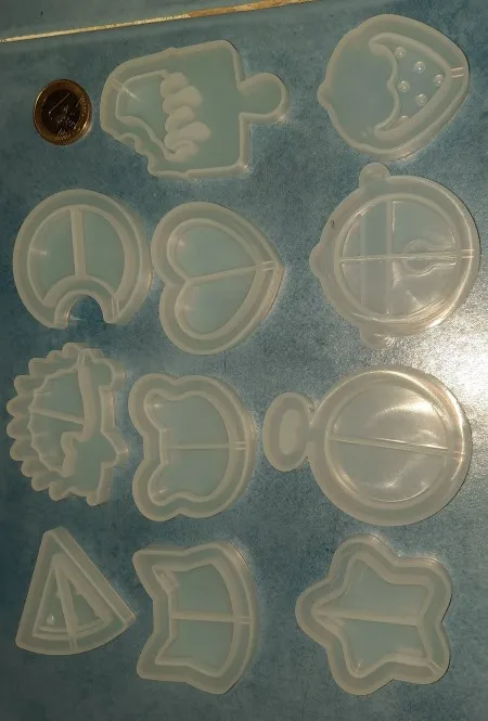 Доставка в США занимает почти 4 недели. Это отличная сделка с количеством форм, которые вы получите! Все формы в хорошем состоянии, за исключением одного, который имеет небольшой разрез. Однако вырезы не должны влиять на кусочки смолы. В целом, я очень доволен этими формами: ^)