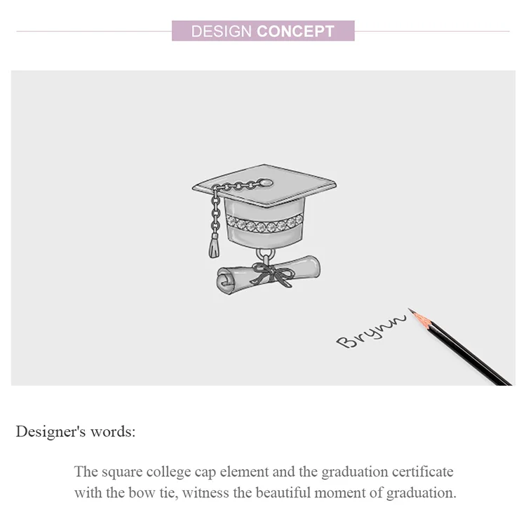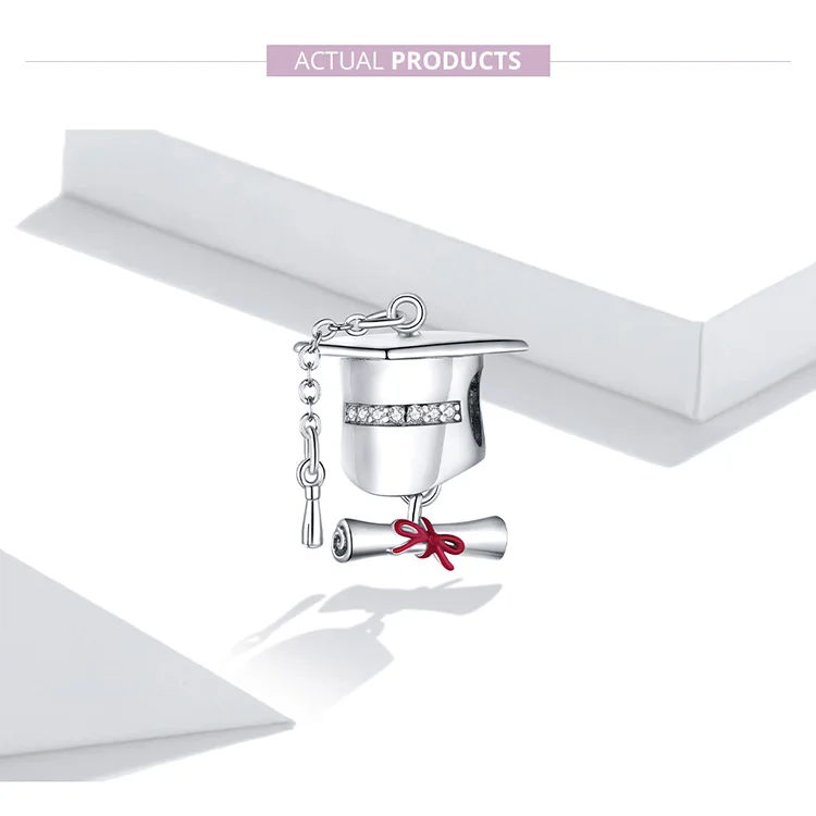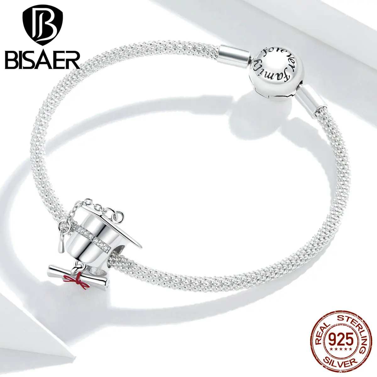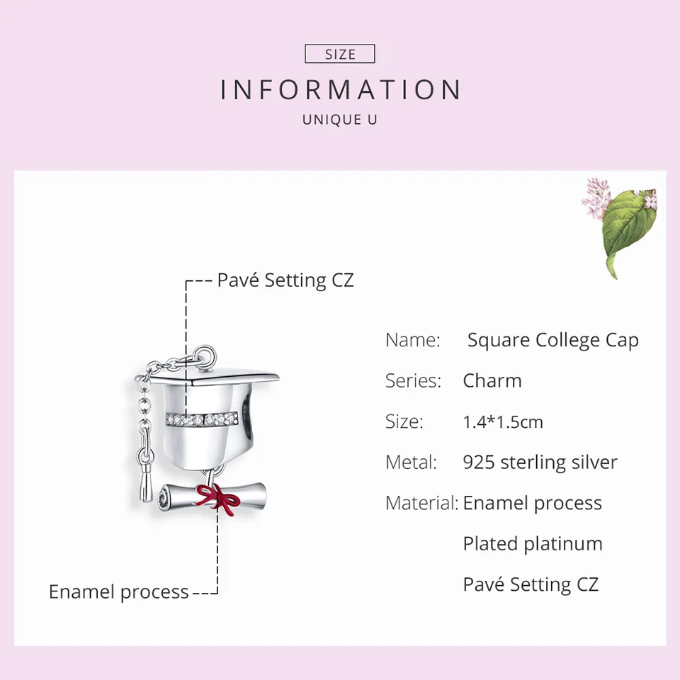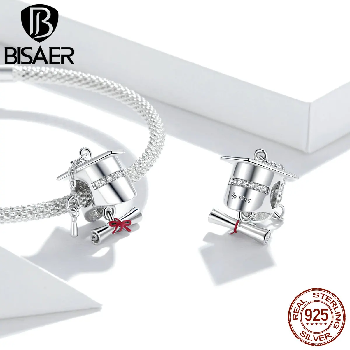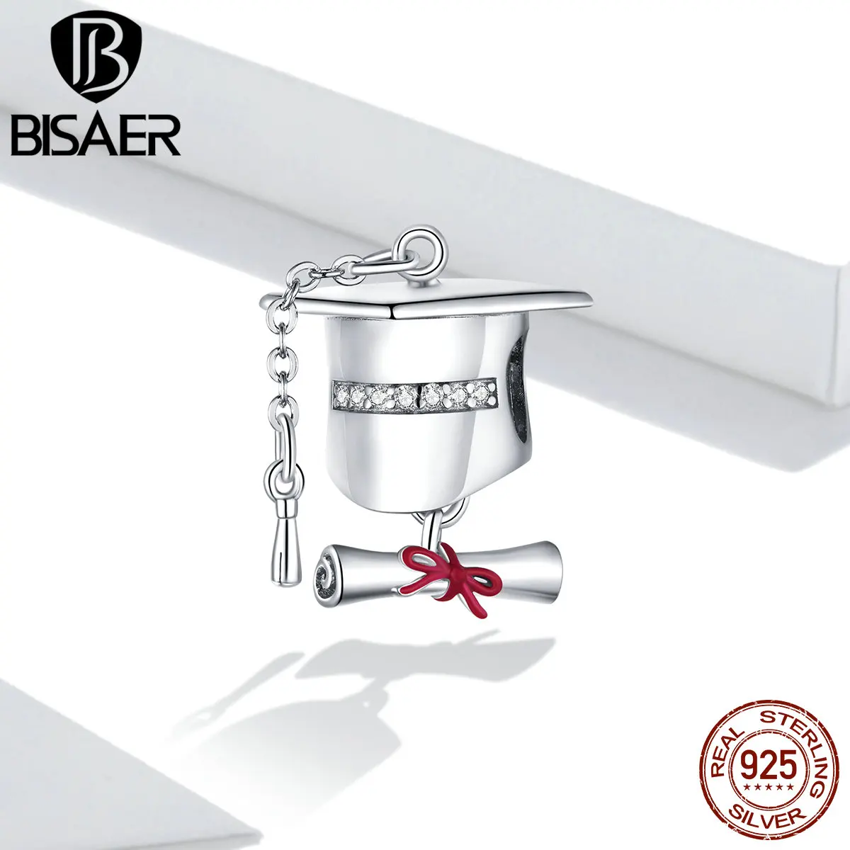 Квадратные шапочки для колледжа BISAER, бусины из стерлингового серебра 925 пробы, подвески для кампуса, выпускного, подвески, Подвески, DIY, браслет, ожерелье, ювелирные изделия EFC357