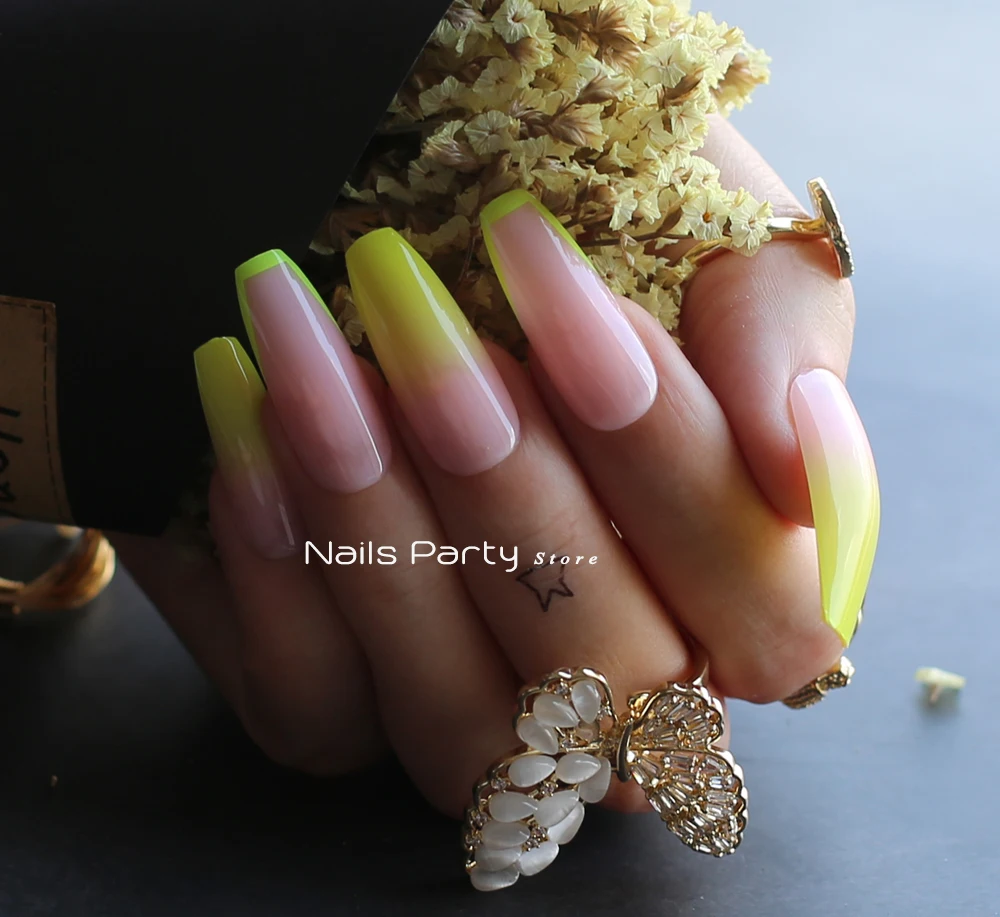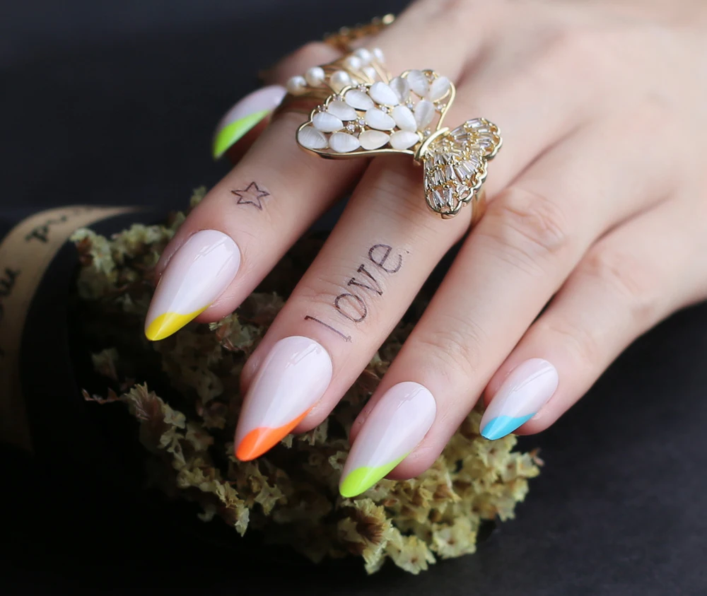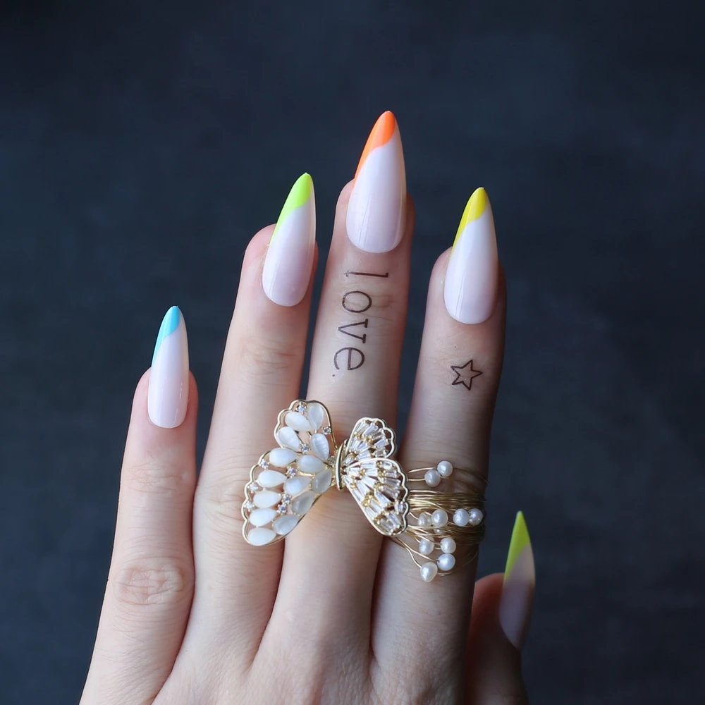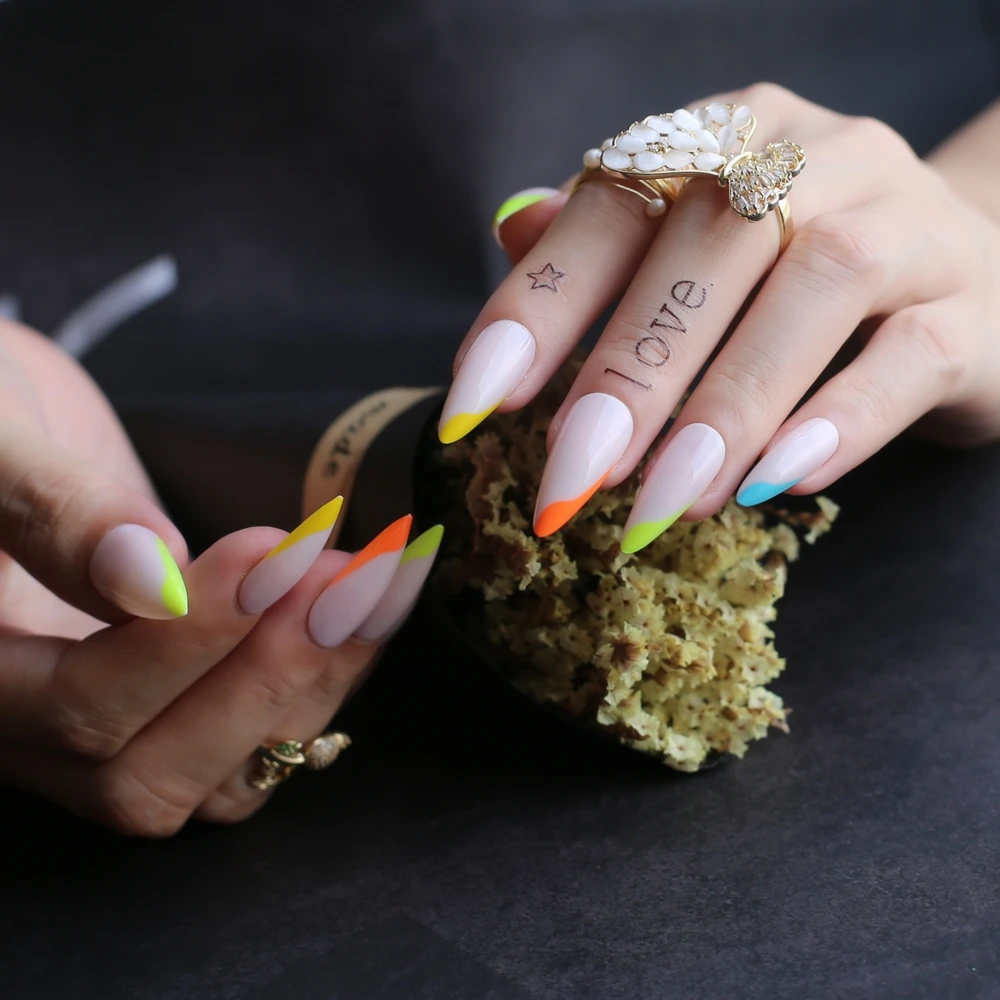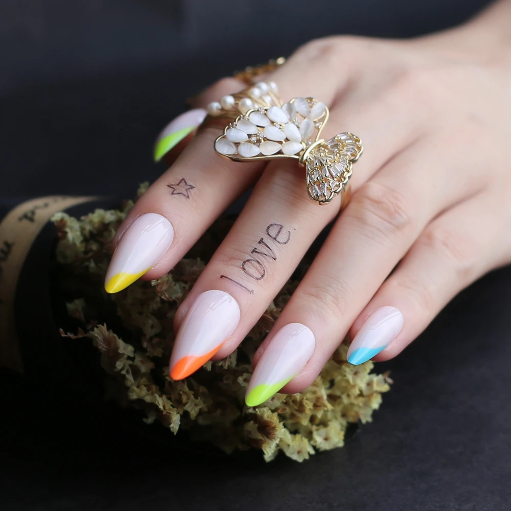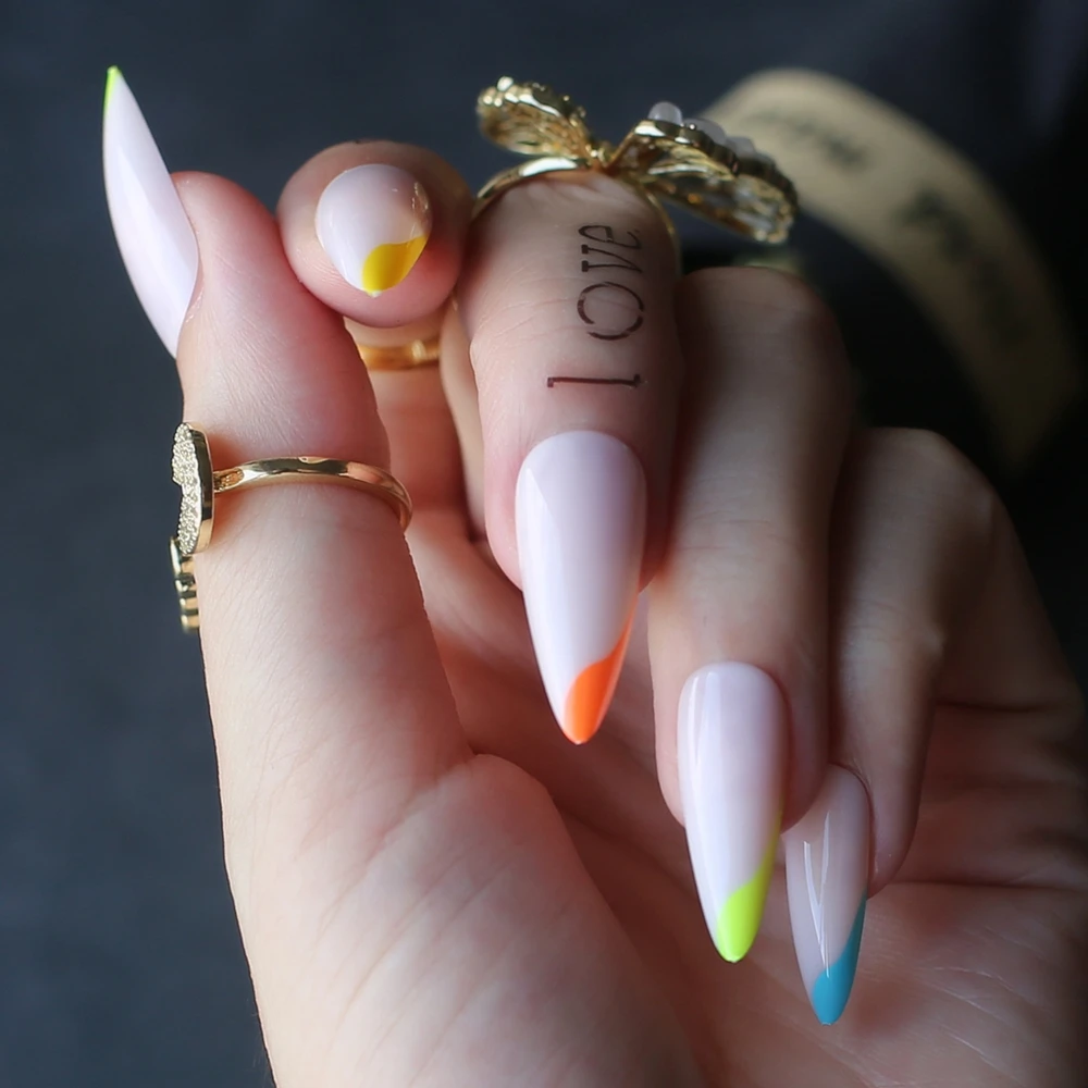 Радужные французские накладные ногти стилеты гель флуоресцентные нюдовые неоновые длинные гелевые накладные ногти боковые цветные 24 шт.