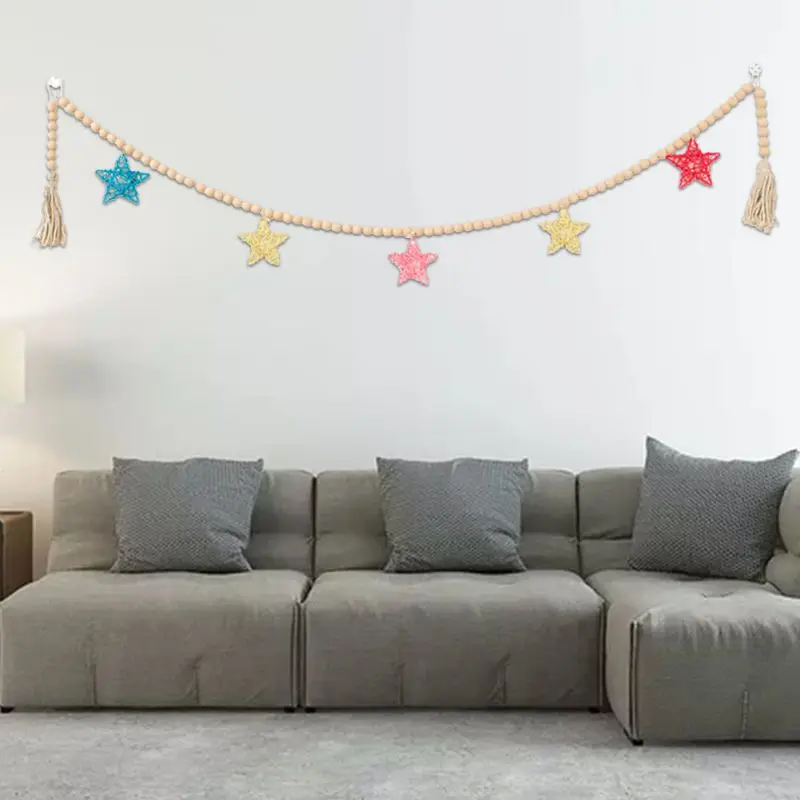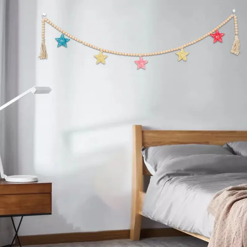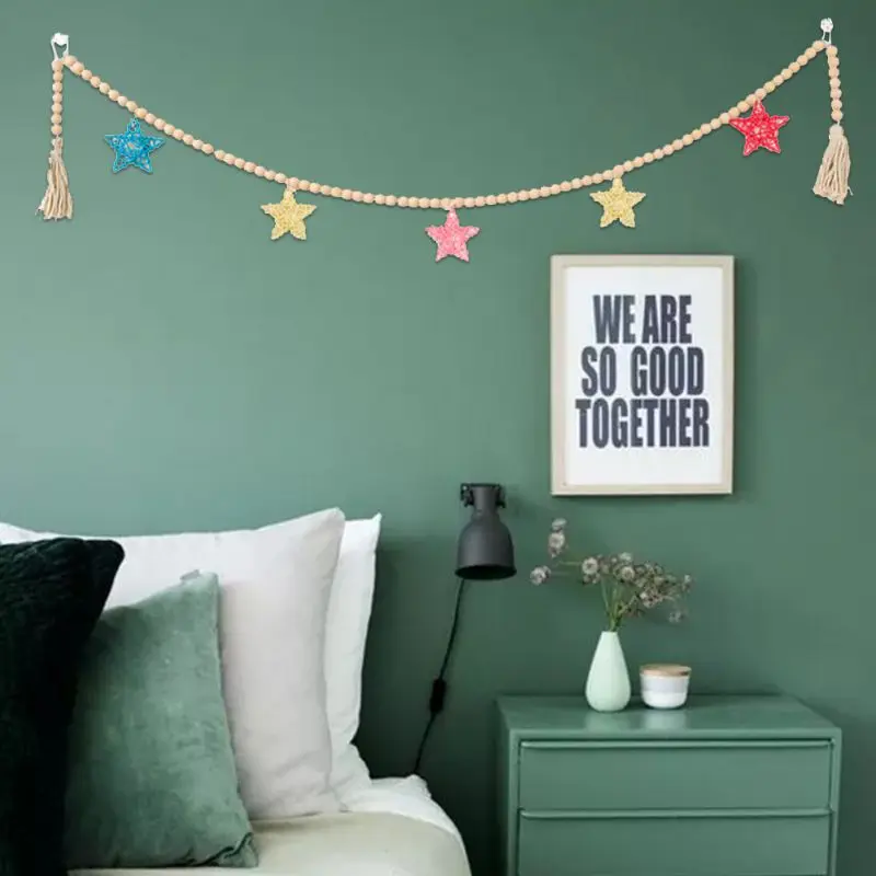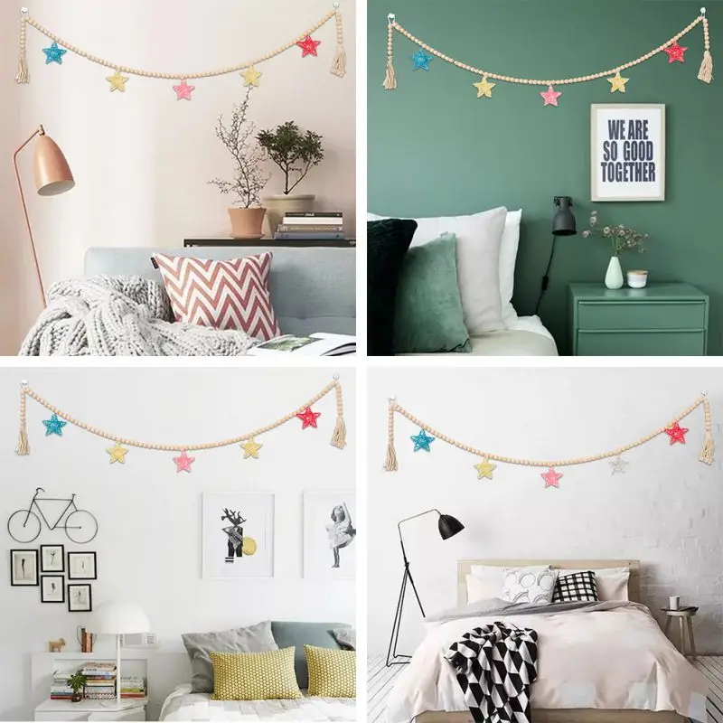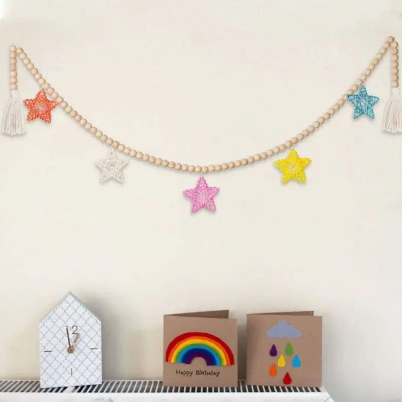 Скандинавская гирлянда из пряжи и бусин для детской комнаты, подвесная гирлянда с кисточками для детской комнаты, украшение с жемчугом, реквизит для детской комнаты, подарок, орнамент