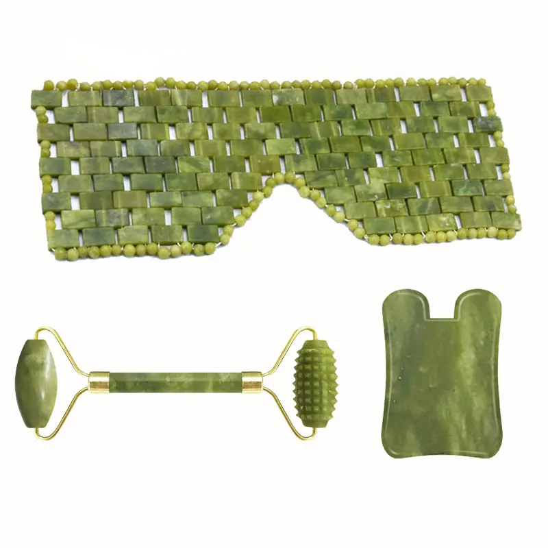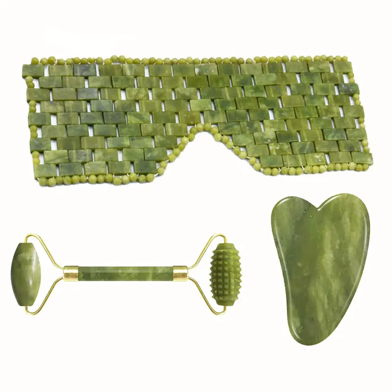 Натуральная Нефритовая маска для глаз, массажер для лица, Нефритовый роликовый массажер гуаша, набор для терапии глаз, нефритовый массажер для лица, скребок для гуаши