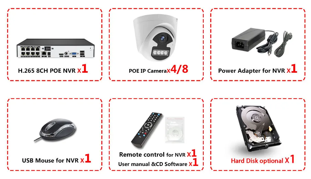 Система Основной процессор: встроенный процессор Операционная система: Встроенный Linux Системный ресурс: Многоканальная синхронная Запись в реальном времени, многоканальное воспроизведение в реальном времени, многоканальная Многоканальная работа в сети, резервное копирование через USB Сжатие видео: H.265 Интерфейс Интерфейс работы: 16 бит Поддержка интерфейса графического интерфейса реального цвета Предварительный просмотр: 1/4/8/9 Видео Видео стандарт: PAL; NTSC Код изображения: H.265 Качество монитора: VGA,HDMI: высокое разрешениеВидео вход: 8*5 Мп IP Камера