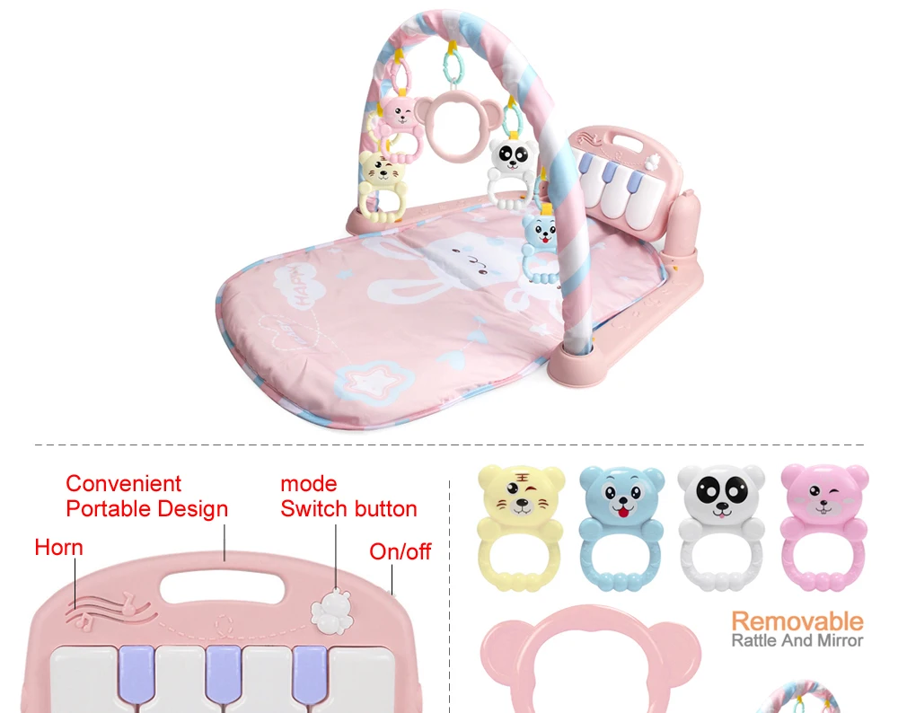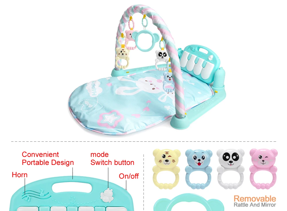 Мягкое одеяло и мягкое освещениеКулон с милым медведем можно снять и поиграть в детскую погремушкуПомогает стимулировать чувства ребенка зрением, прикосновением и звуком.Пианино позволяет вашему ребенку использовать естественные движения, чтобы сделать восхитительные вещи.