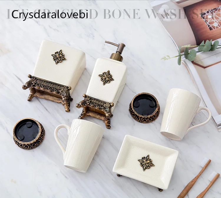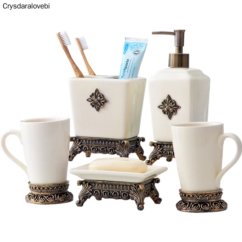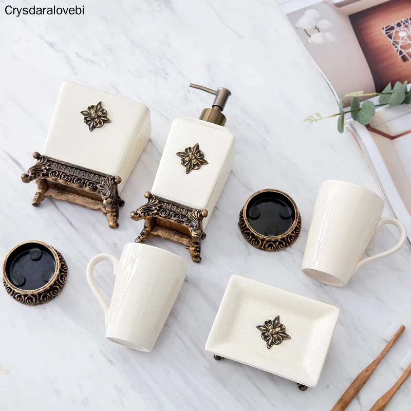 Флакон для мыла, лосьона, аксессуар для ванной комнаты Набор для умывания ванной, 5 шт., европейский стиль, свадебный подарок, из американской керамики