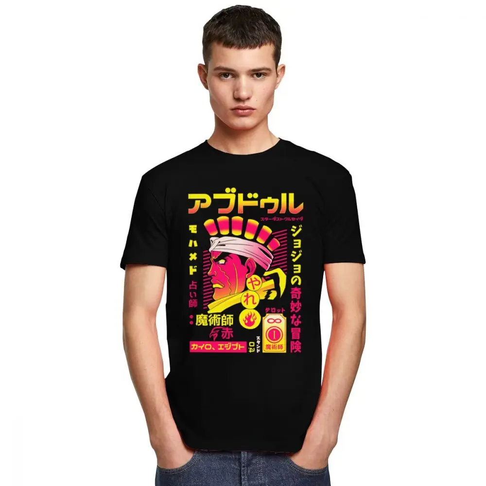 Мужские футболки Jojo Bizarre Adventure, Мужская хлопковая футболка с короткими рукавами и изображением манги, футболка для отдыха с изображением Мухамеда авдола, одежда японского аниме, Merch