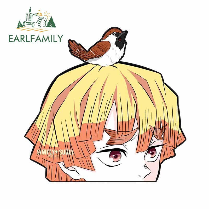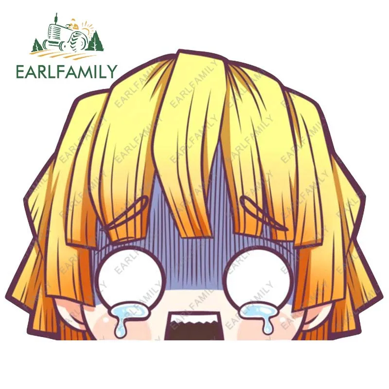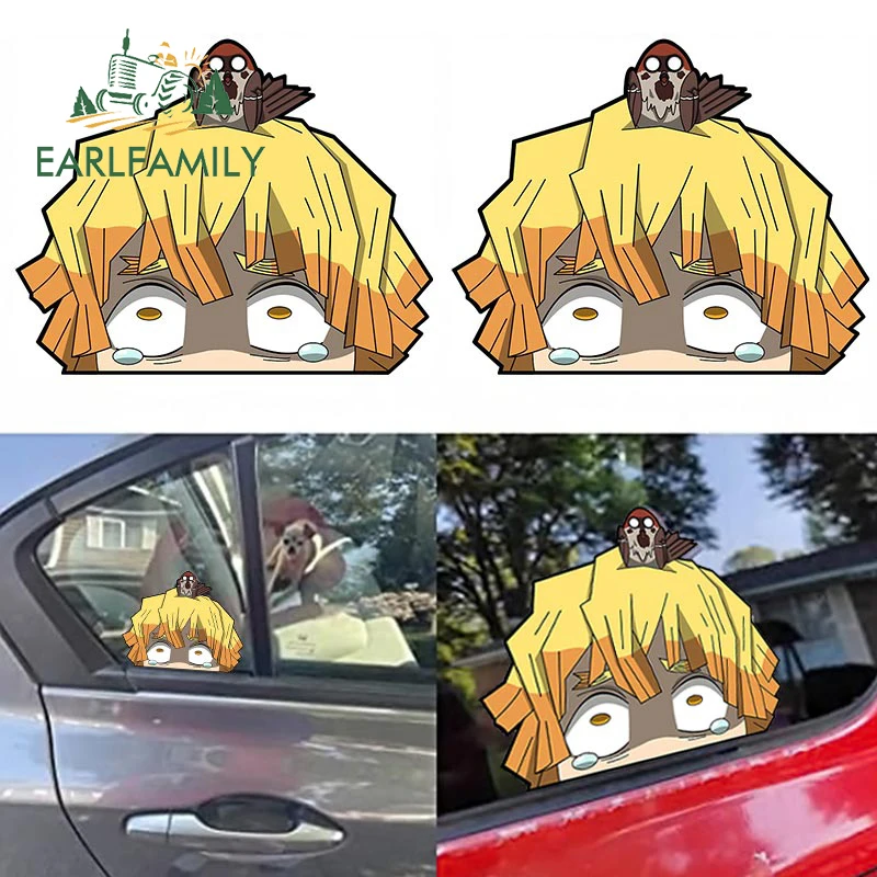 EARLFAMILY 13 см для Demon Slayer Zenitsu Peeker Забавный автомобильный стикер s авто виниловые автомобильные наклейки лобовое стекло окна аниме JDM RV стикер