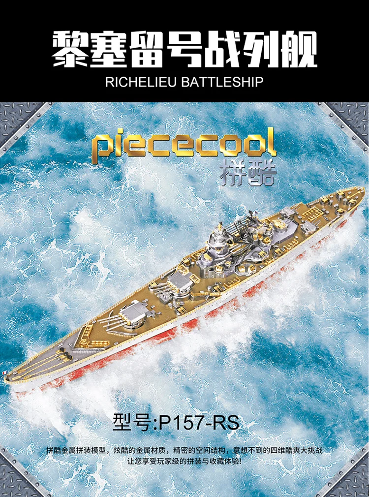 Металлический 3D-пазл Piececool P157 RICHELIEU BATTLESHIP, набор для сборки своими руками, лазерная вырезка, обучающие игрушки для детей, подарок