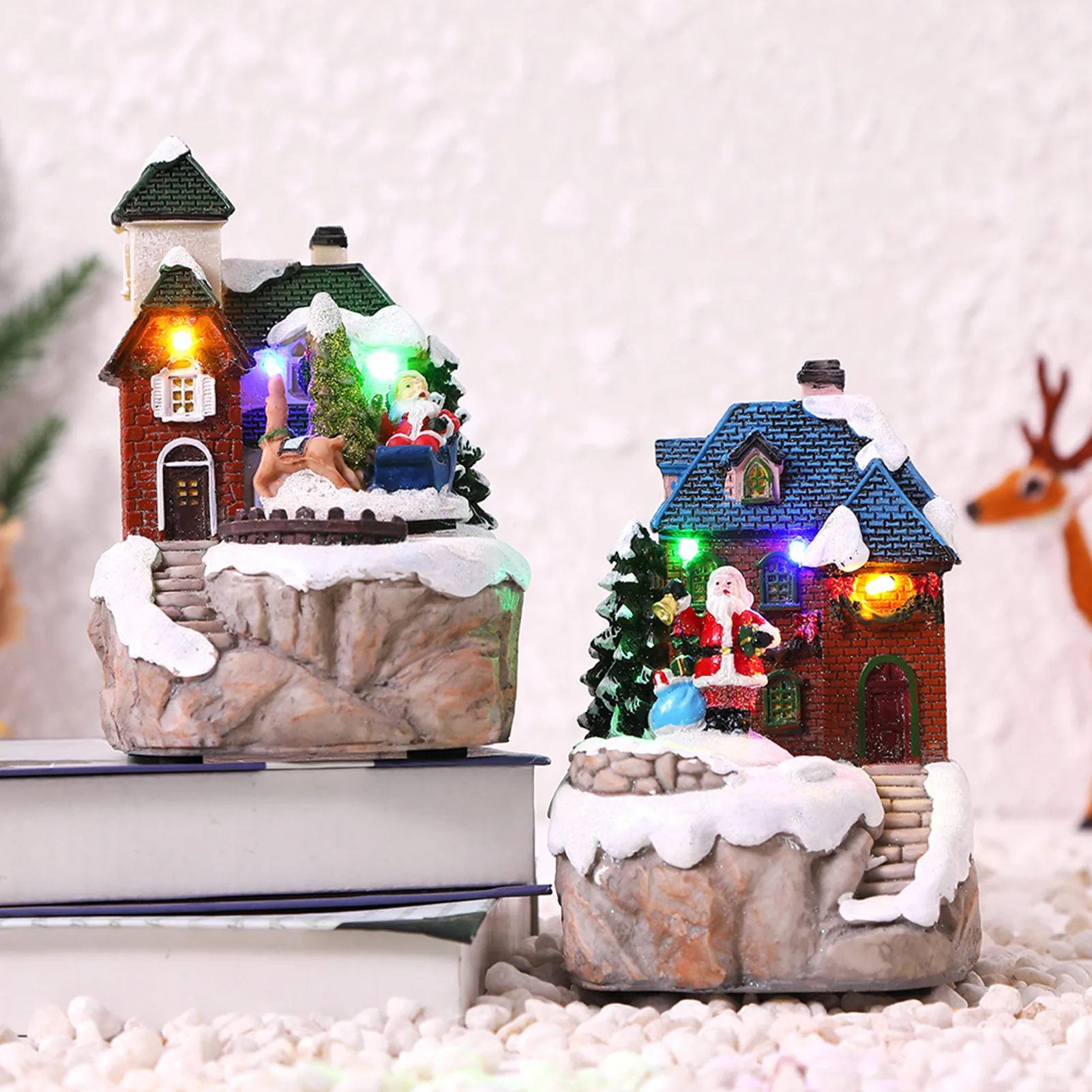 Снежные домики с красочной мигающей светодиодной светильник кой, Рождественское украшение для дома, новогодние подарки для детей, рождественские Пейзажи из смолы