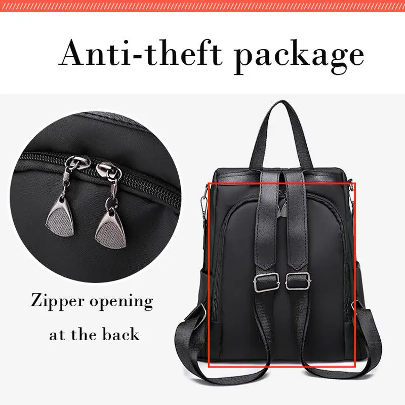 Рюкзак женский из ткани Оксфорд, школьный рюкзак с защитой от кражи, черный, 2020