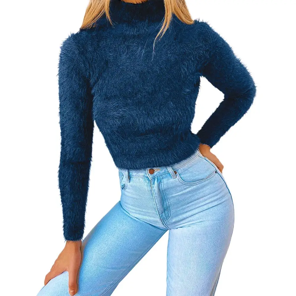 Новый осенний свитер, Однотонный свитер с длинным рукавом, водолазка, Женский пуловер, свитер, мягкий бархатный теплый топ, размера плюс