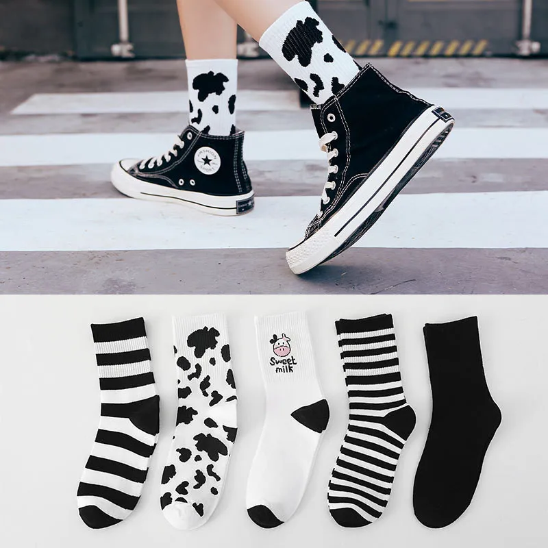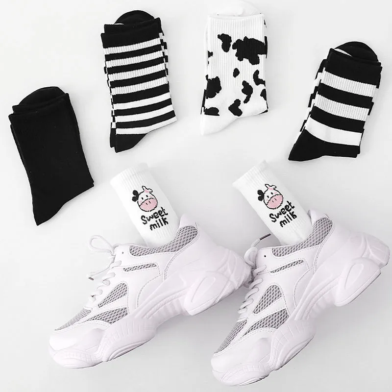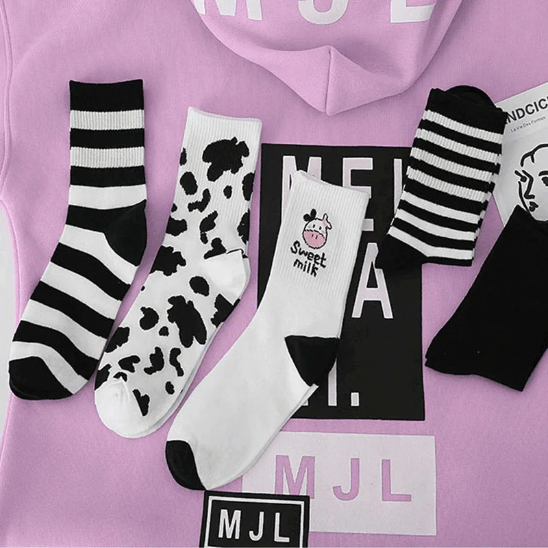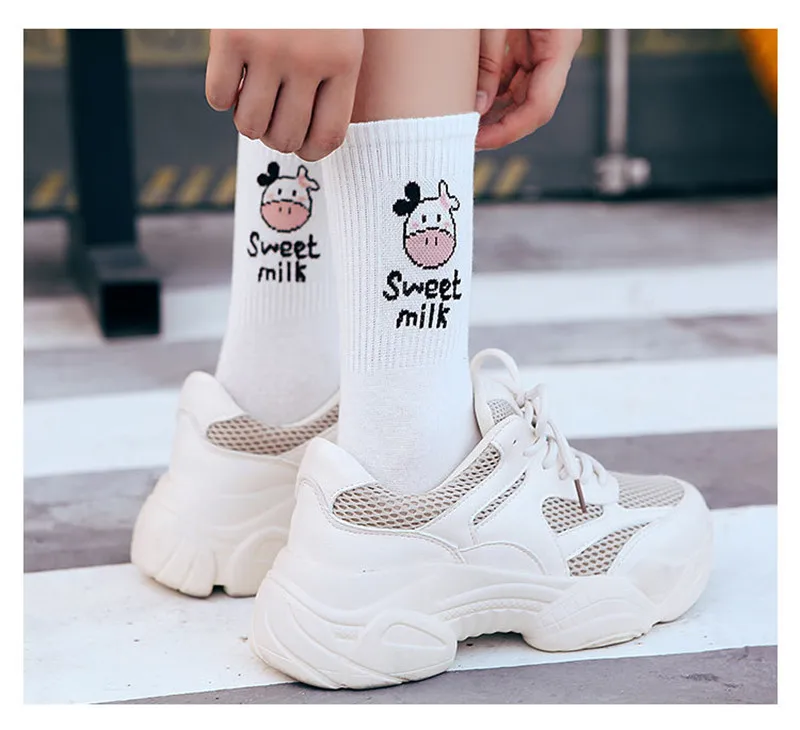 2020 новые японские женские хлопковые милые носки с героями мультфильмов для девочек, Meias Harajuku, длинные носки в полоску с изображением животных, коровы, молока