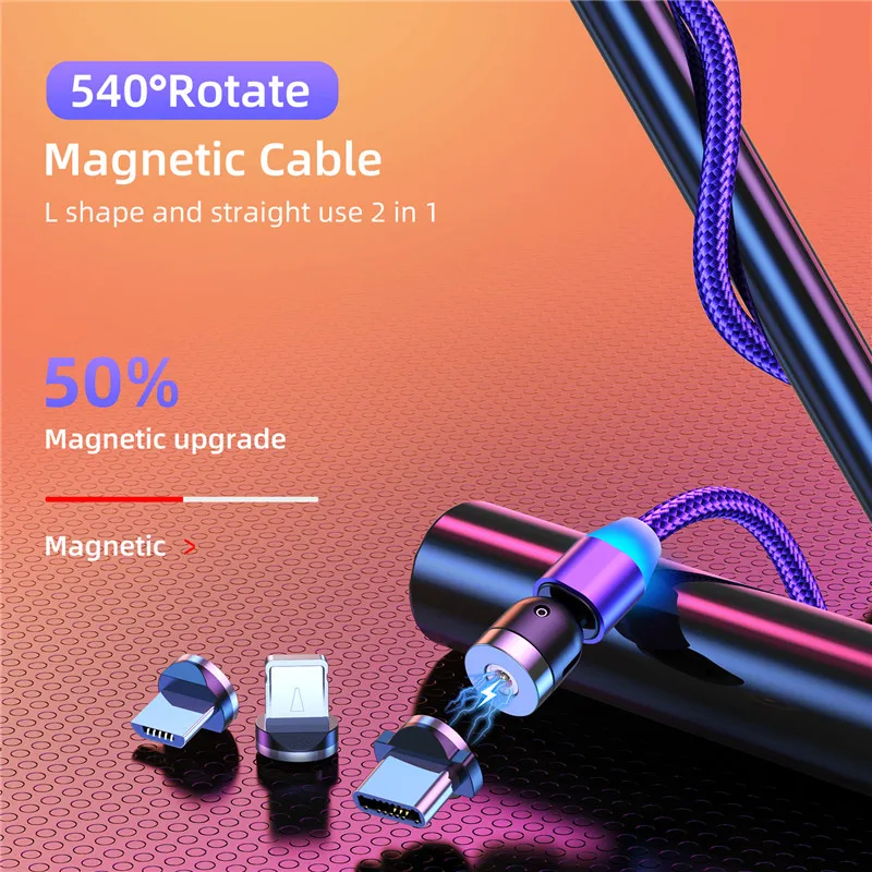 Магнитный кабель USB type-C со светодиодной подсветкой 540, для быстрой зарядки, для iPhone 12, Xiaomi, Redmi, Samsung, Huawei